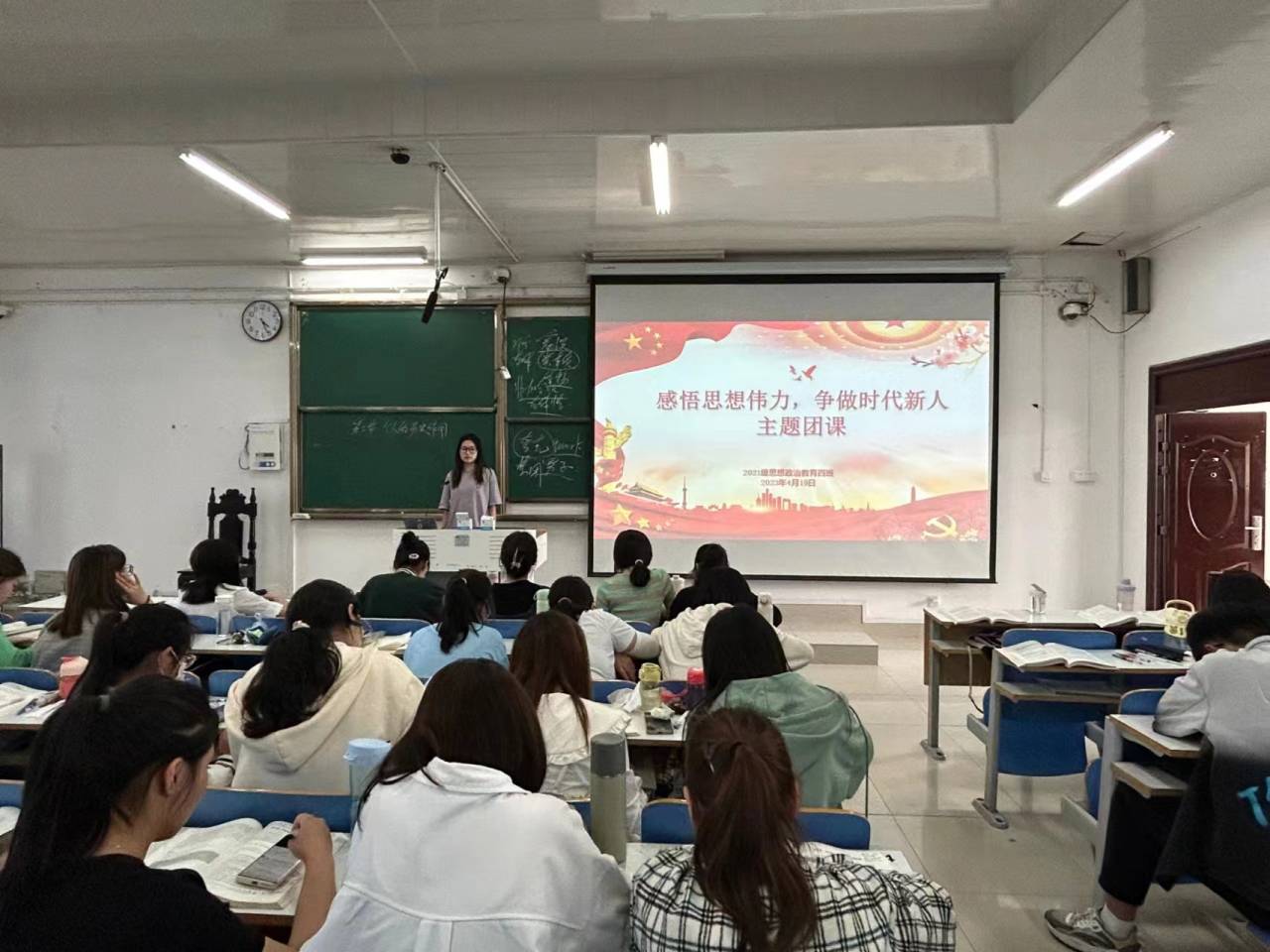 4月19日下午,beat365在线唯一官网2021级思想政治教育四班在社科楼514教室开展“感悟思想伟力,争做时代新人”主题团课。2021级思想政治教育四班全体团员参加本次团课。团课由团支书刘珂含主持。