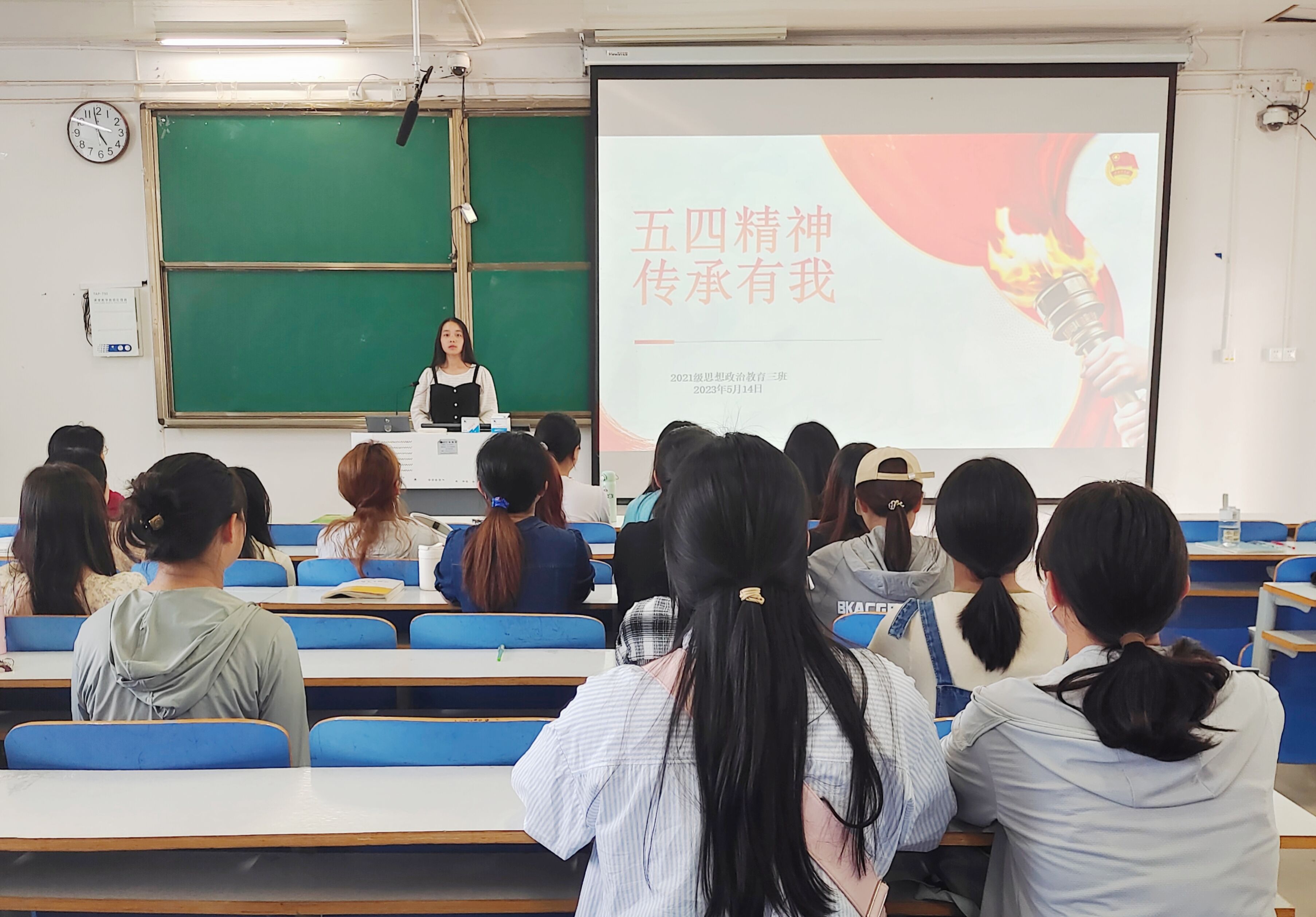 5月14日下午,beat365在线唯一官网2021级思想政治教育三班在社科楼514教室举办“五四精神,传承有我”主题团课。beat365在线唯一官网2021级思想政治教育三班全体团员参与此次活动。团课由团支书王岚霄主持。