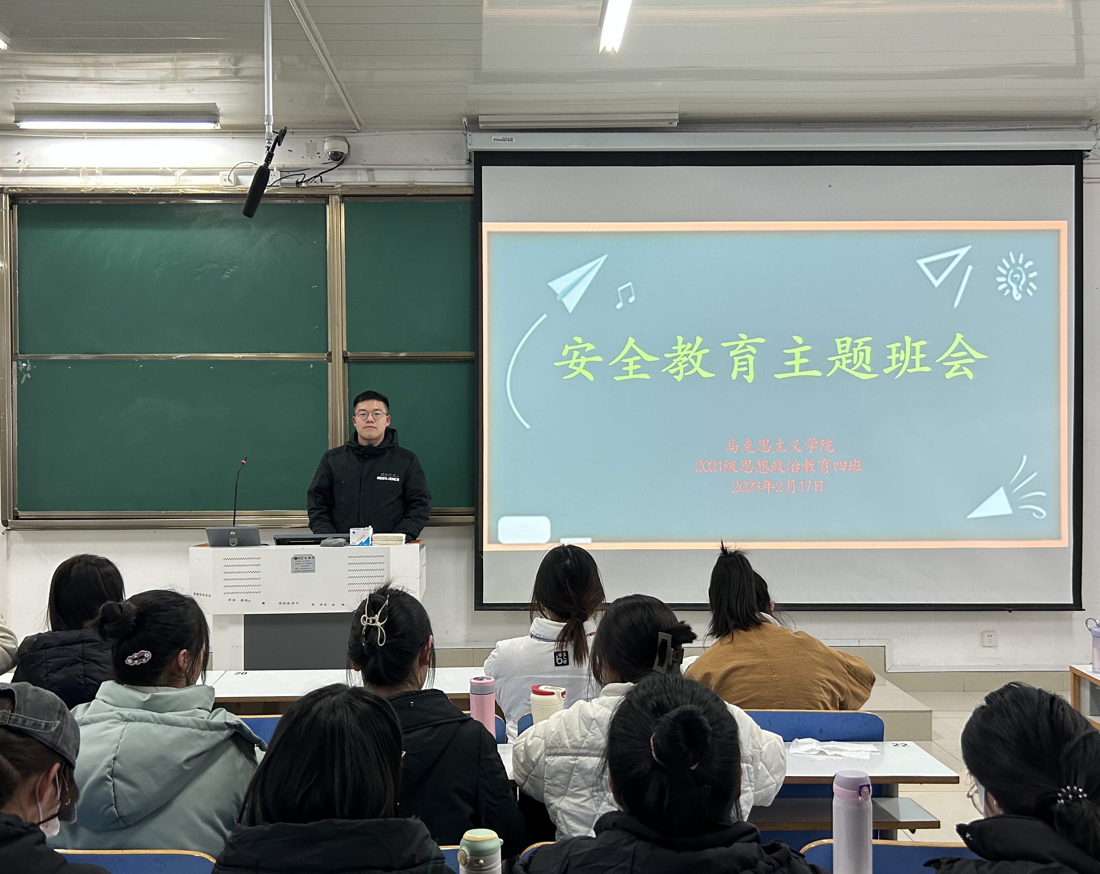 2月17日下午,beat365在线唯一官网2021级思想政治教育四班在社科楼514教室开展安全教育主题班会。2021级思想政治教育四班全体同学共同参会。班会由副班长常康哲主持。