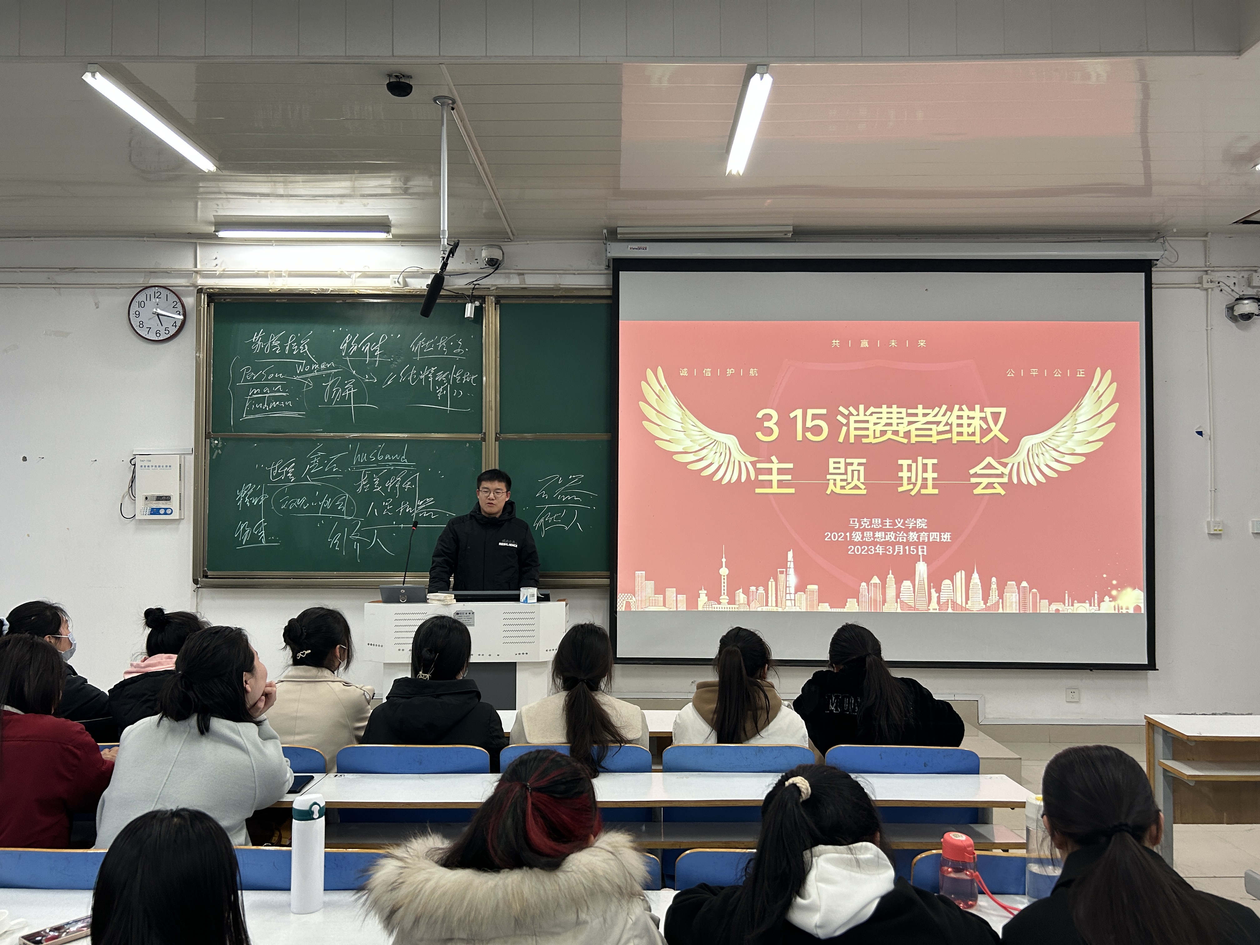 为了扩大消费者权益保护的宣传,提高我班同学维权意识和能力,3月5日下午,beat365在线唯一官网2021级思想政治教育四班在社科楼514教室开展“315消费者维权”主题班会。2021级思想政治教育四班全体成员共同参会,会议由副班长常康哲主持。