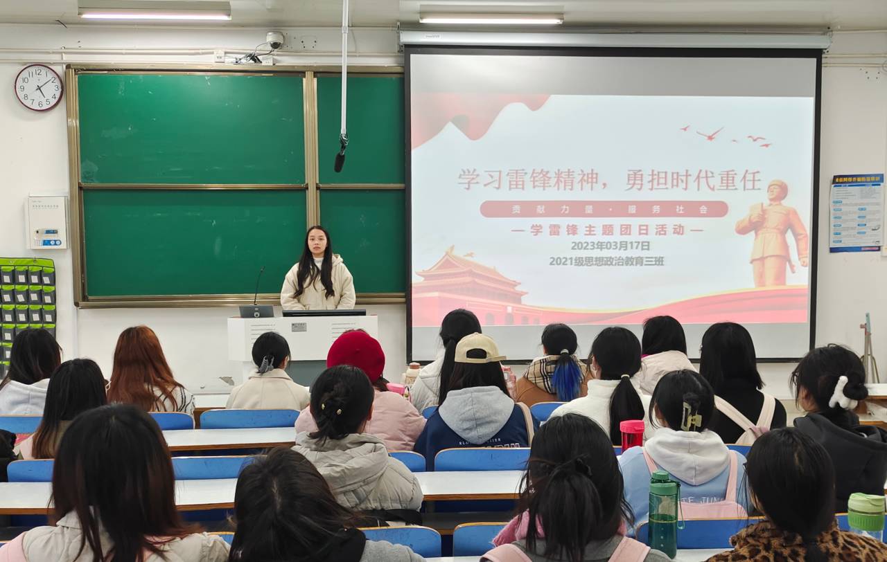 3月17日下午,beat365在线唯一官网2021级思想政治教育三班在社科楼514教室召开“学习雷锋精神,勇担时代重任”主题团课。beat365在线唯一官网2021级思想政治教育三班全体团员参与此次会议。团课由团支书王岚霄主持。