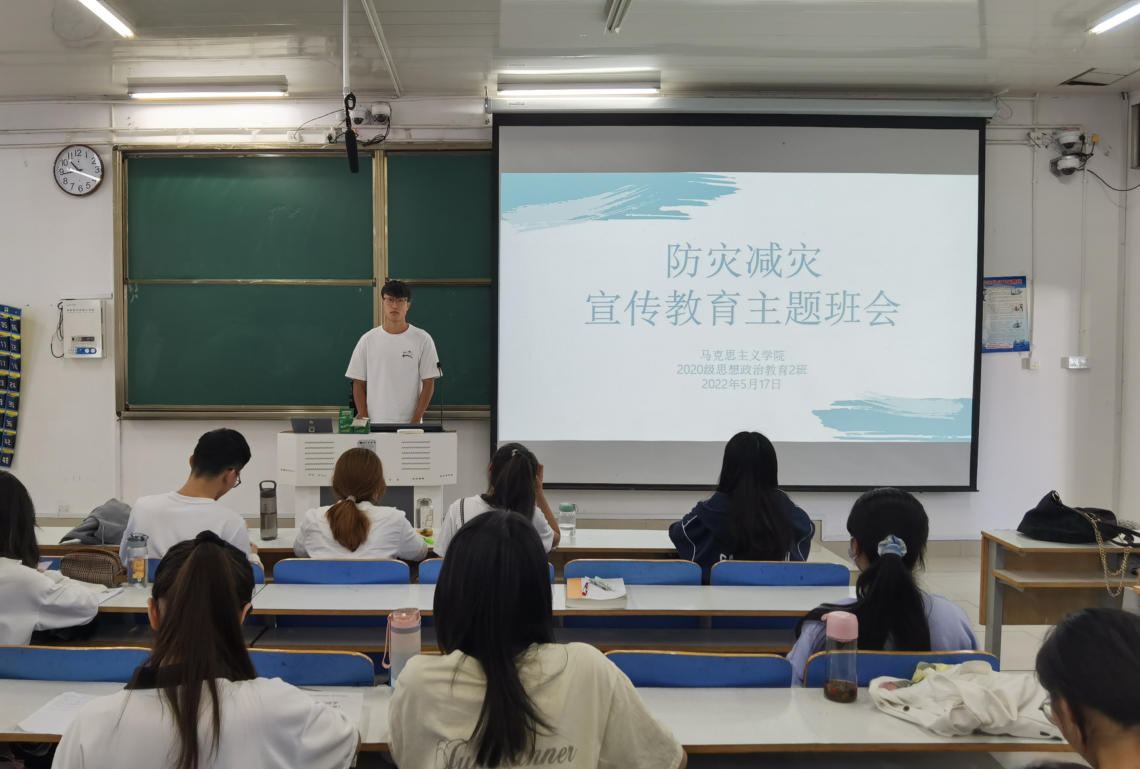 为加强学生安全教育,提高学生防灾减灾意识,5月17日上午,beat365在线唯一官网2020级思想政治教育二班、定向二班在社科楼514教室召开“防灾减灾”宣传教育主题班会。2020级思想政治教育二班、定向二班全体同学共同参与本次班会。班会由团支书陈宇航主持。