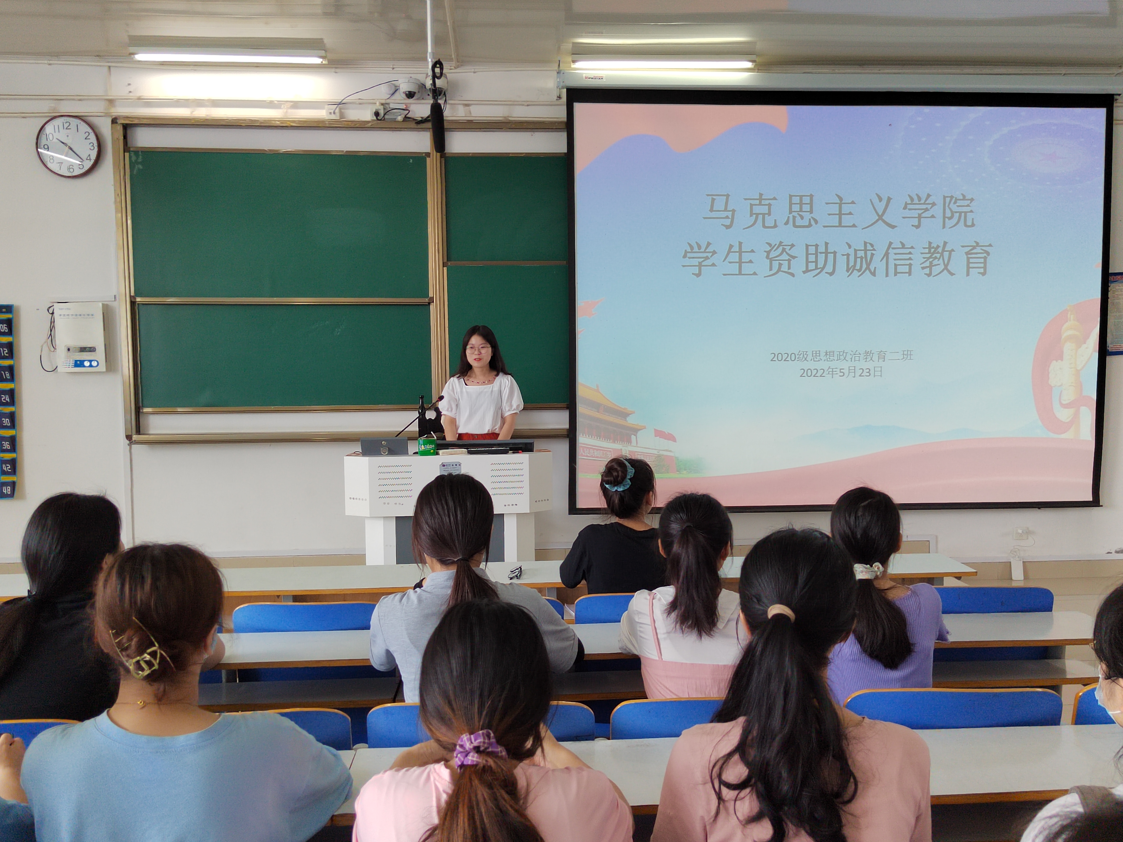 5月23日上午,beat365在线唯一官网2020级思想政治教育二班、定向二班在社科楼514教室召开学生资助诚信教育主题班会。辅导员高小佳及2020级思想政治教育二班、定向二班全体同学共同参会。班会由高小佳主持。