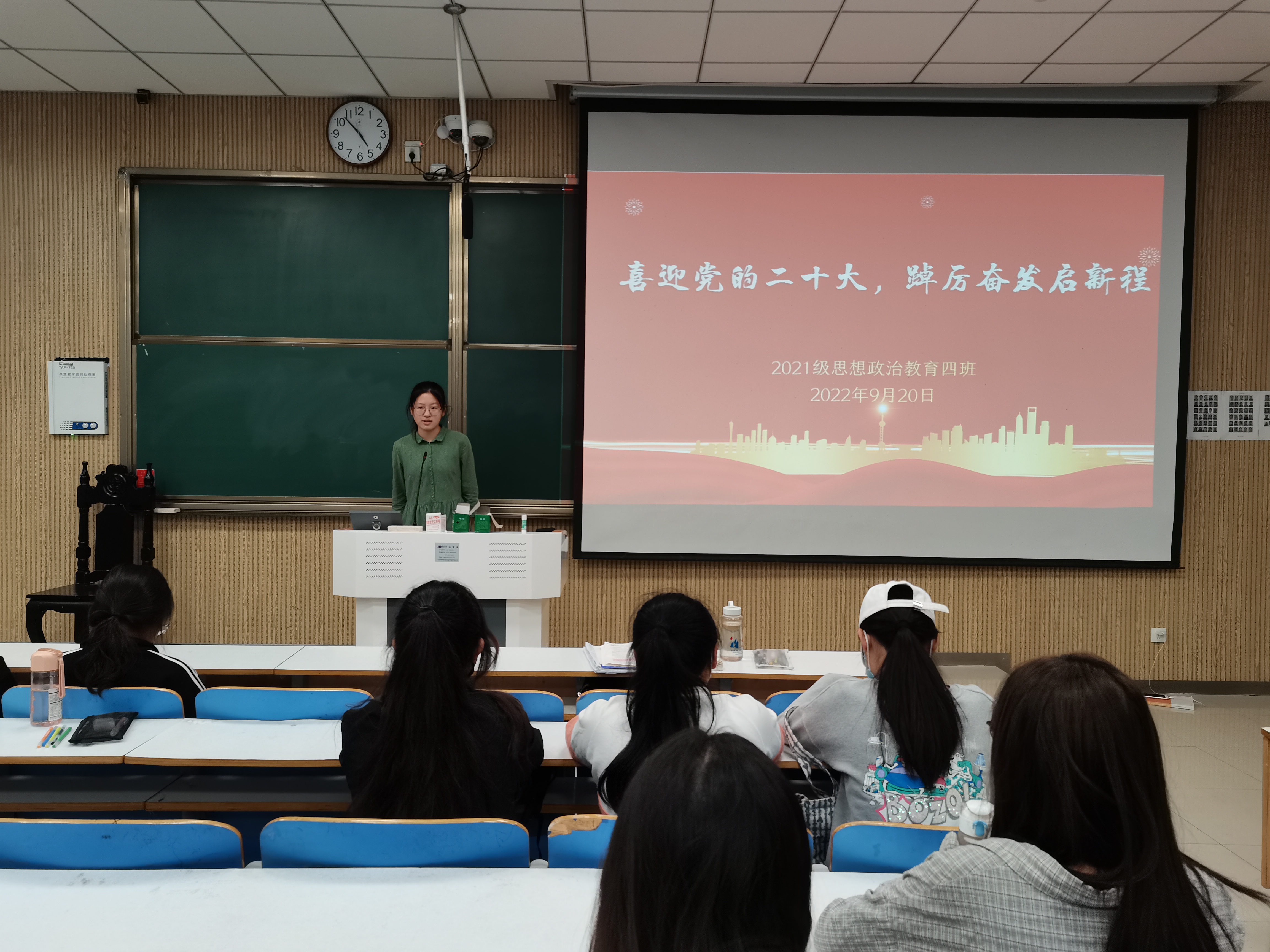 9月20日下午,beat365在线唯一官网2021级思想政治教育四班在社科楼516教室召开“喜迎党的二十大,踔厉奋发启新程”主题团课。2021级思想政治教育四班全体同学参加本次团课。团课由团支书刘珂含主持。