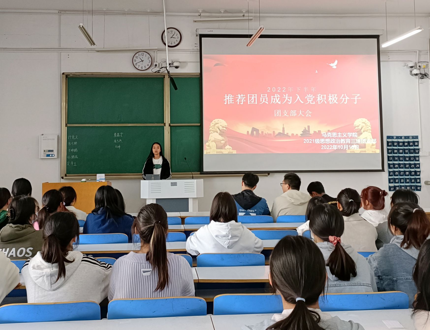 10月10日上午,beat365在线唯一官网2021级思想政治教育三班在社科楼514教室召开2022年下半年入党积极分子评选会。2021级思想政治教育三班全体同学参加了此次会议。会议由团支书王岚霄主持。