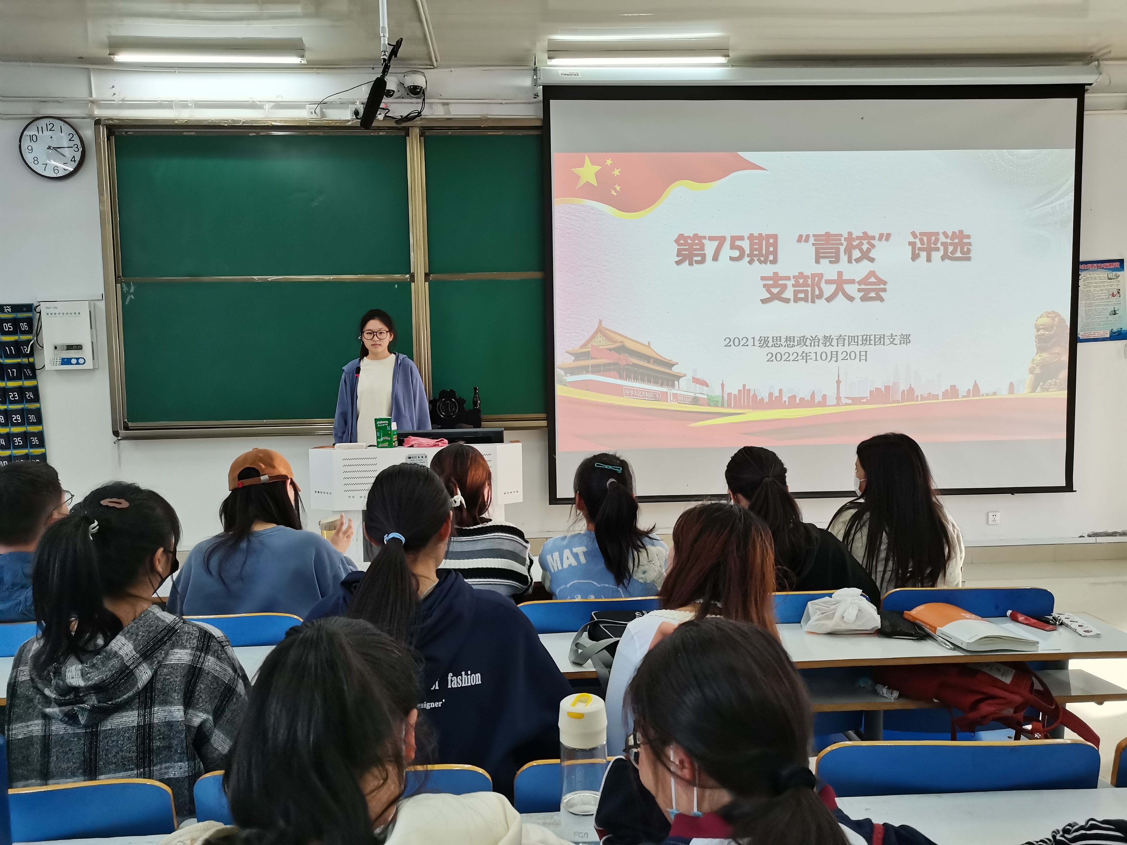 10月20日下午,beat365在线唯一官网2021级思想政治教育四班在社科楼515教室开展第75期“青校”评选团支部大会。beat365在线唯一官网2021级思想政治教育四班全体团员共同参与本次会议。会议由团支书刘珂含主持。