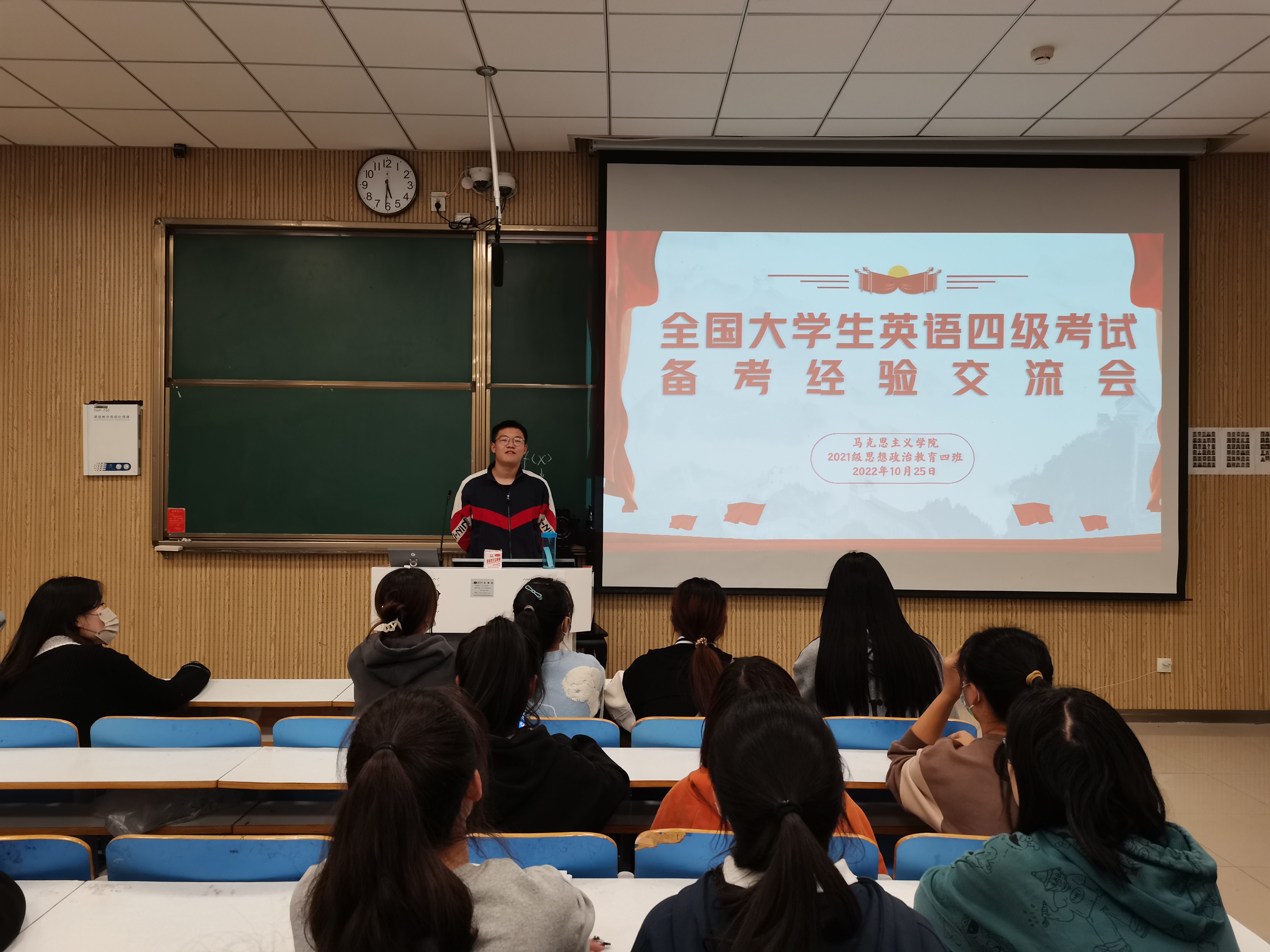 为进一步提升我班同学备考热情,明晰备考规划,10月25日下午,beat365在线唯一官网2021级思想政治教育四班在社科楼514教室召开“全国大学生英语四级考试”备考经验交流会。2021级思想政治教育四班全体同学共同参会。班会由副班长常康哲主持。