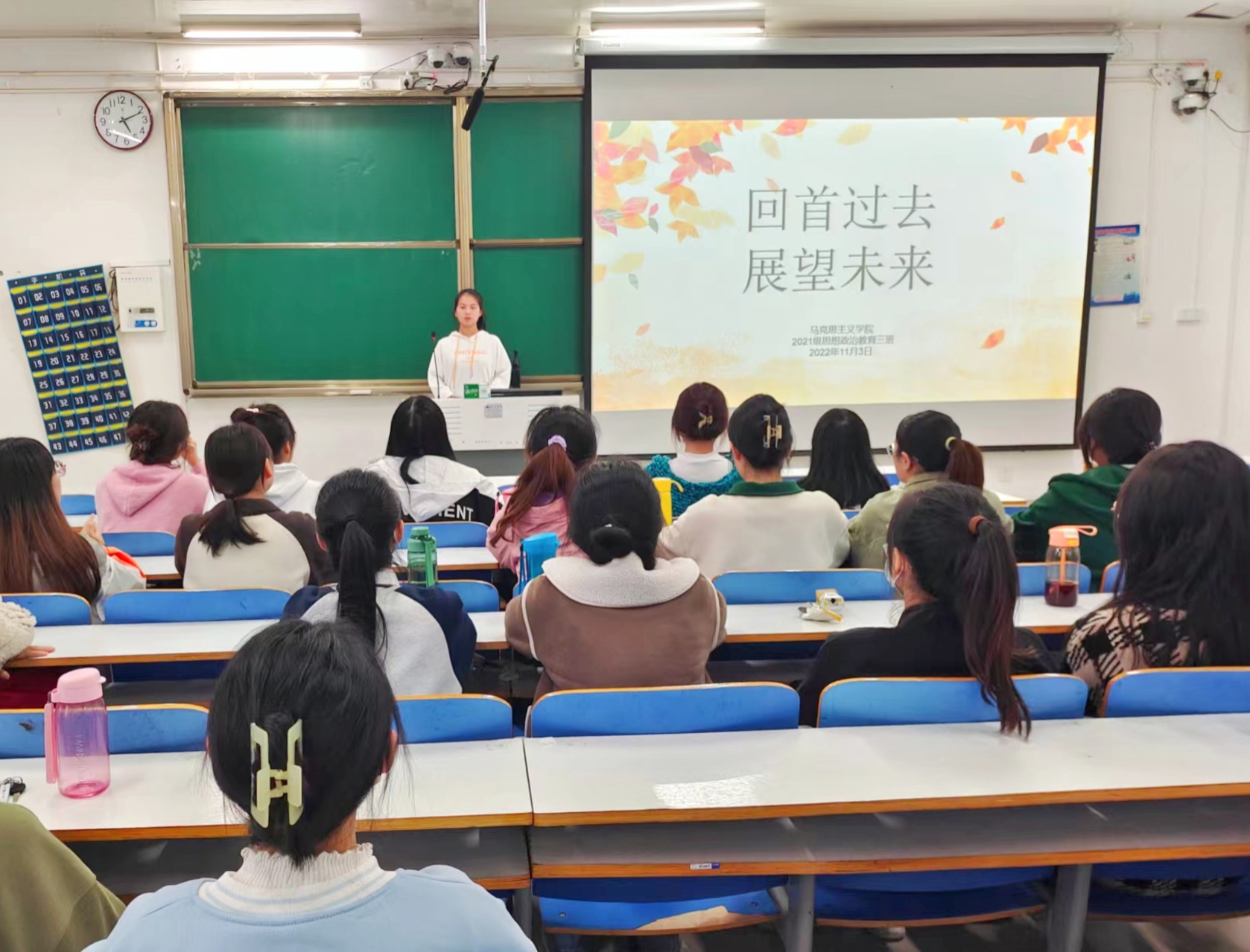 11月3日下午,beat365在线唯一官网2021级思想政治教育三班在社科楼514召开“回首过去,展望未来”主题班会。beat365在线唯一官网2021级思想政治教育三班全体成员以及辅导员高小佳老师参与此次会议。会议由班长易从漫主持。