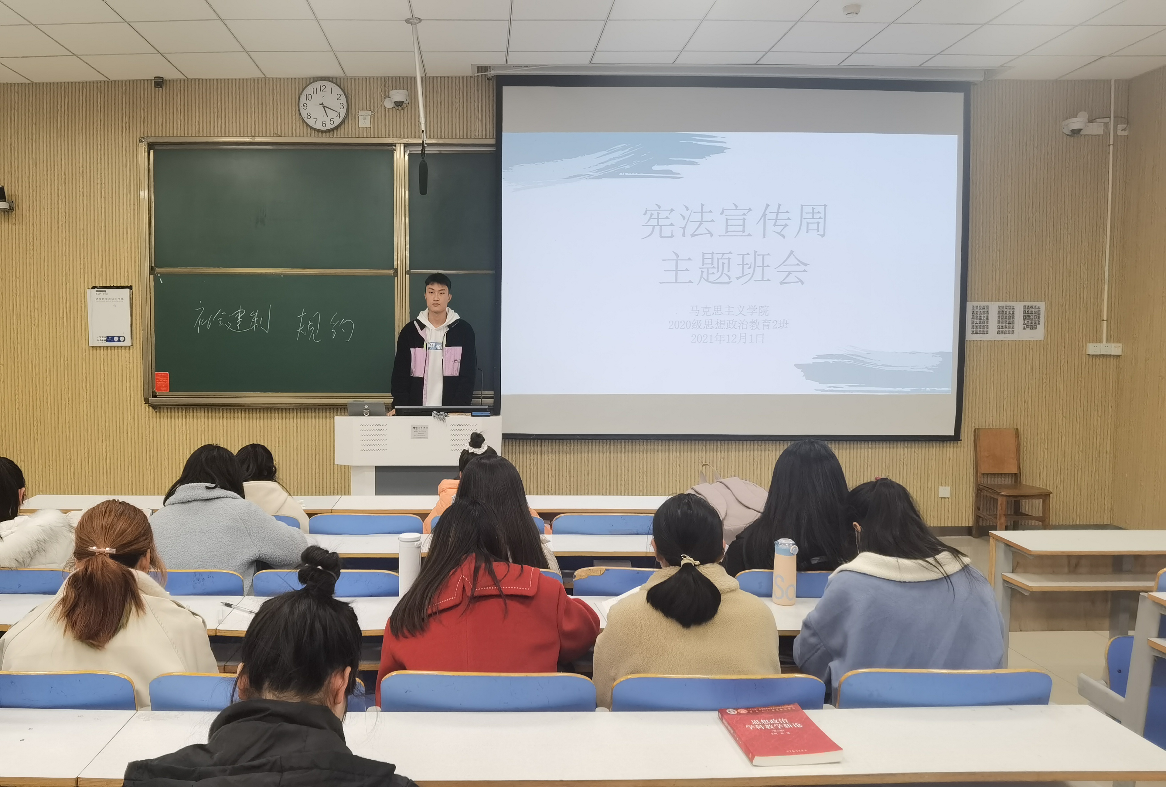 为深入落实beat365关于开展“宪法宣传周”工作的具体要求,提升我班同学法治素养,12月1日下午,beat365在线唯一官网2020级思想政治教育二班、定向二班在社科楼515教室召开“宪法宣传周”主题班会。2020级思想政治教育二班、定向二班全体同学共同参与本次班会。会议由团支书陈宇航主持。