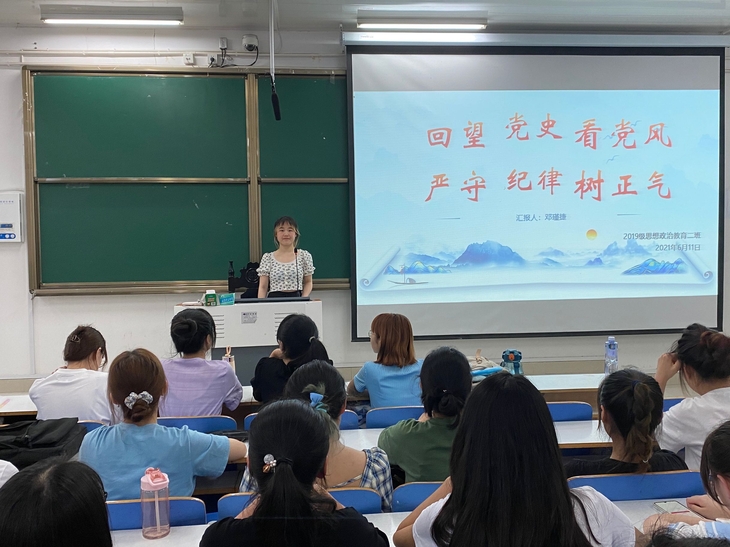 每一次历史回眸,都是一次精神洗礼;每一次党性教育,都是一次自我革命。6月11日上午,beat3652019级思想政治教育二班于社科楼516教室召开“回望党史看党风 严守纪律树正气”党史教育主题团课。2019级思想政治教育二班全体成员共同参会。会议由文体委员邓瑾捷主持。