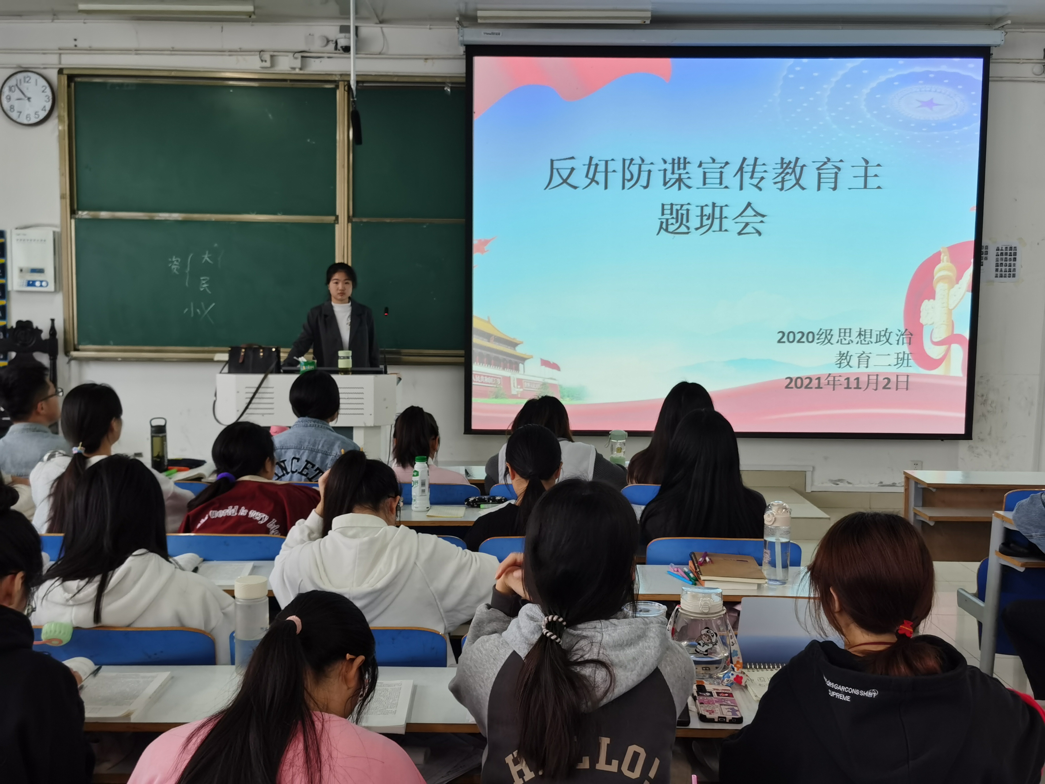 为进一步增强同学们的国家安全意识,11月2日上午,beat365在线唯一官网2020级思想政治教育二班、定向二班在社科楼516教室召开“反奸防谍”宣传教育主题班会。2020级思想政治教育二班、定向二班全体同学共同参与本次班会。班会由副班长孙雪主持。