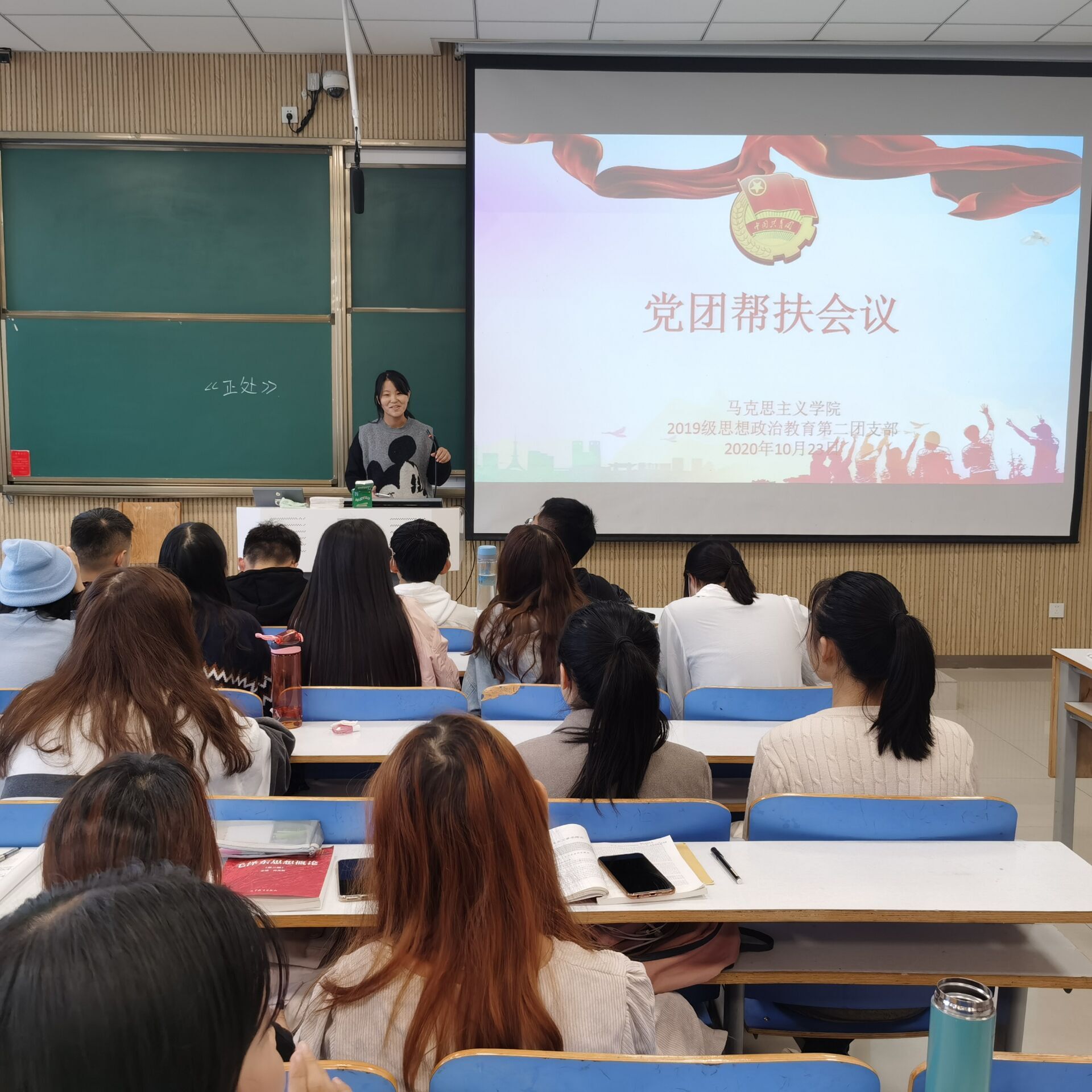 10月23日下午,beat365在线唯一官网2019级思想政治教育二班在社科楼515教室召开党团帮扶会议。beat365预备党员王文芳、张晓艳及2019级思想政治教育二班全体成员共同参会。会议由团支书孙雅娴主持。