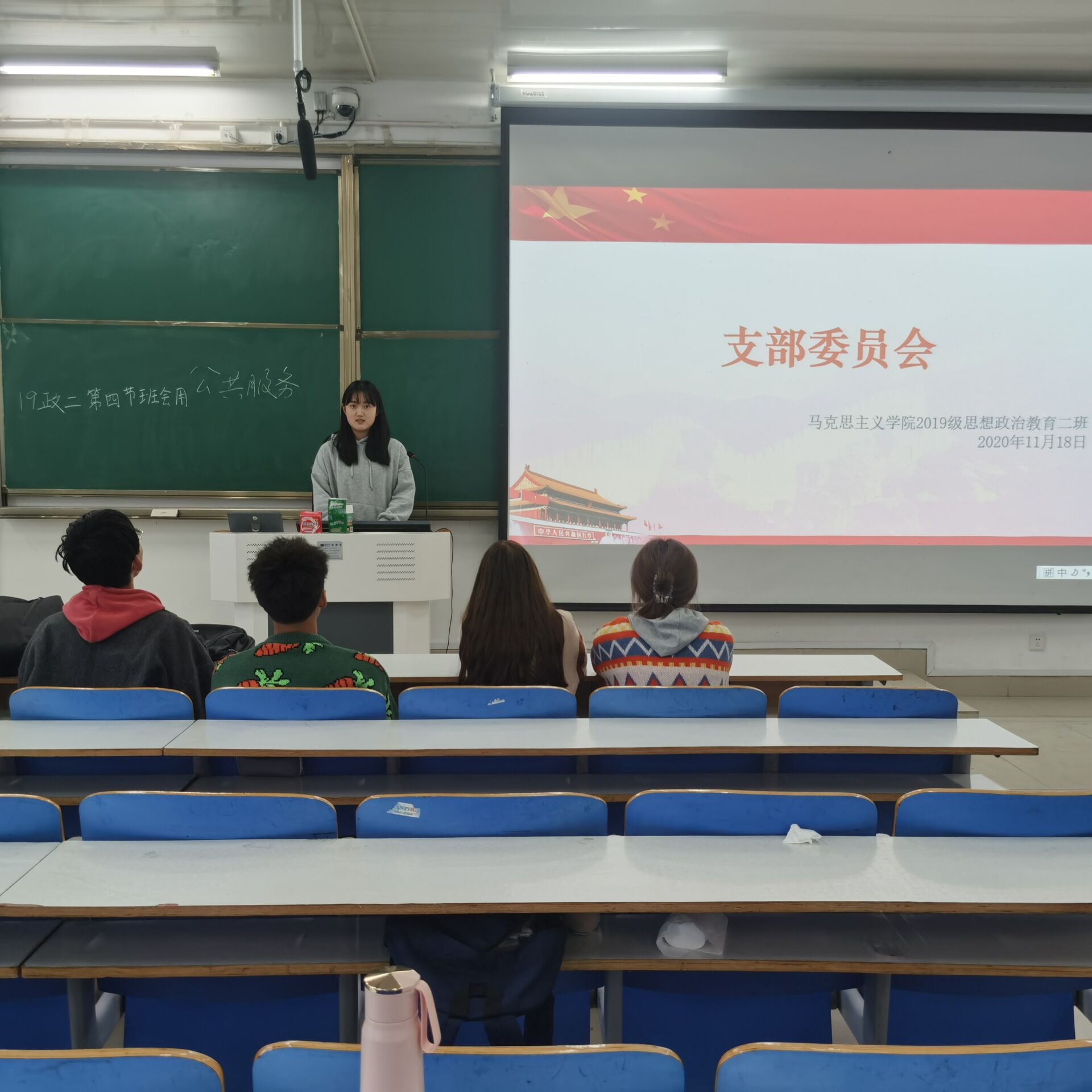 11月18日下午,beat365在线唯一官网2019级思想政治教育二班在社科楼514教室召开“学习与贯彻党的十九届五中全会精神”支部委员会。beat365在线唯一官网2019级思想政治教育二班全体成员共同参会。会议由团支书孙雅娴主持。