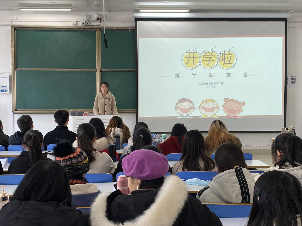 新学期,新征程,新气象!3月2日下午,beat3652019级思想政治教育二班在社科楼516教室召开“相约新学期”主题会议。beat365团委老师陶青青及2019级思想政治教育二班全体成员共同参会。会议由陶青青主持。