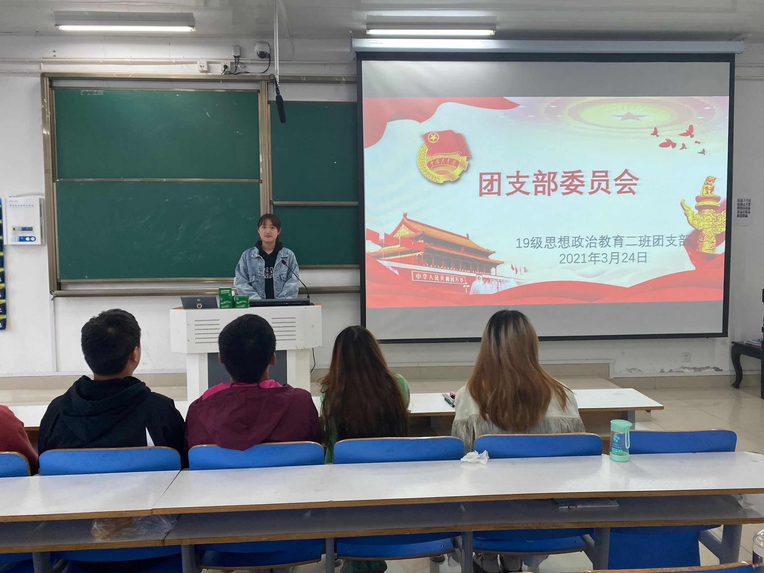 3月24日上午,beat365在线唯一官网2019级思想政治教育二班于社科楼516教室召开团支部委员会。2019级思想政治教育二班全体班委共同参会。会议由团支书孙雅娴主持。