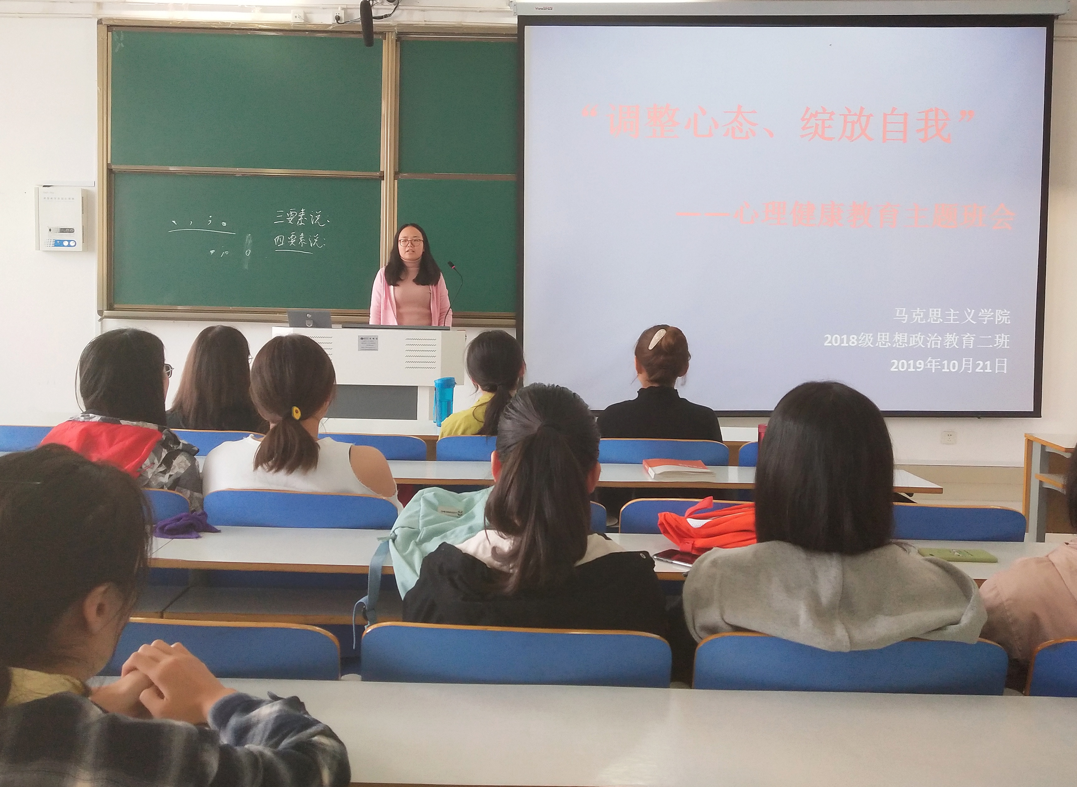 为进一步提高同学们的心理调节能力,保持良好的心理状态,10月21日上午,beat3652018级思想政治教育二班于社科楼516教室顺利开展“调整心态,绽放自我”心理健康教育主题班会。我班邀请辅导员曹菁菁前来参加本次班会。班会由心理委员席妞主持。