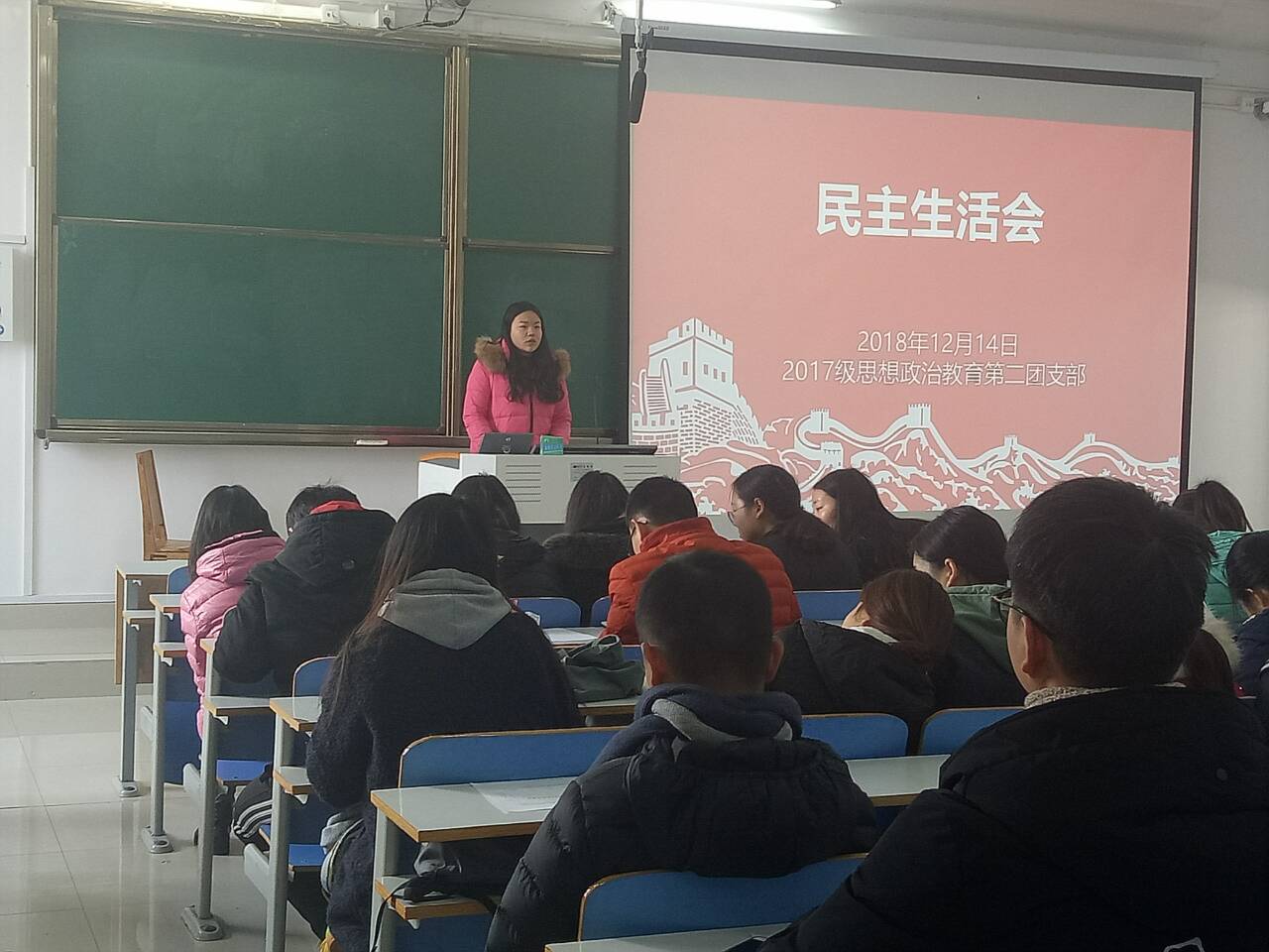 12月14日上午,2017级思想政治教育第二团支部全体团员在社科楼515教室开展了以“批评与自我批评”为主题的组织生活会,会议由团支书秦康怡主持。