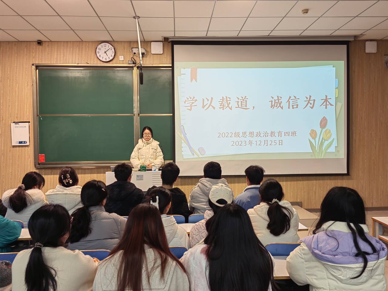 为提升我班学生学习氛围,激发学生学习内驱力, 12月25日下午,beat365在线唯一官网2022级思想政治教育四班在社科楼515教室召开“学以载道,诚信为本”期末动员主题班会。beat3652022级思想政治教育四班全体同学参与本次班会。本次会议由班长牛志杰主持。