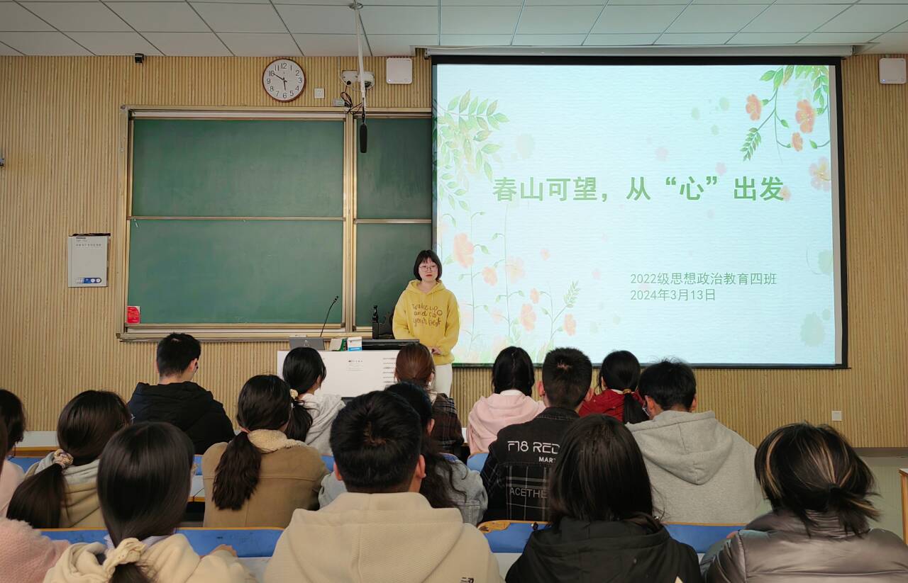 为了更好地了解同学们的心理健康状况,同时引导同学们以积极向上的心态来迎接新学期,3月13日上午,beat365在线唯一官网2022级思想政治教育四班在社科楼515教室举办“春山可望,从心出发”心理班会。beat3652022级思想政治教育四班全体成员参与本次班会。本次会议由心理委员徐成若主持。