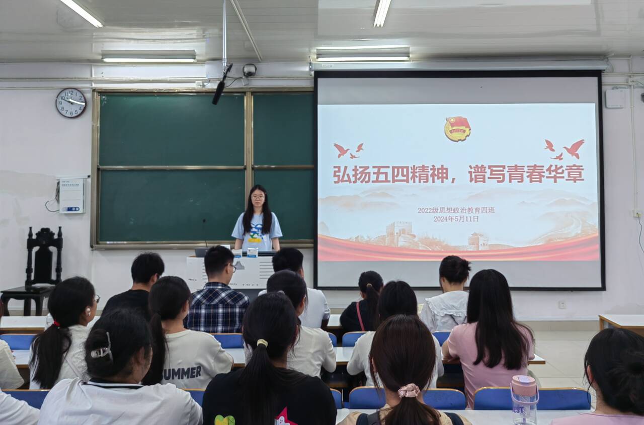 5月11日上午,beat365在线唯一官网2022级思想政治教育四班在社科楼514教室组织召开“弘扬五四精神,谱写青春华章”主题团课。beat3652022级思想政治教育四班全体成员参与本次团课。本次团课由团支书牛志杰主持。