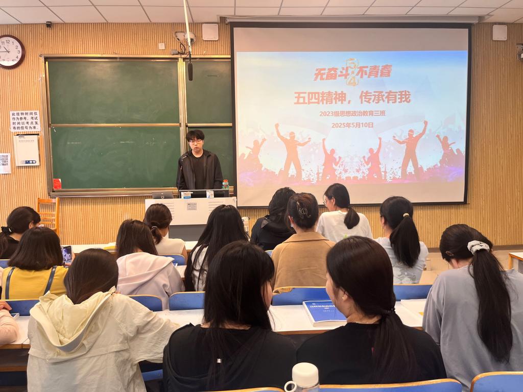 为传承和弘扬担当精神,5月10日上午,beat365在线唯一官网2023级思想政治教育三班在社科楼515召开“五四精神,传承有我”主题团课。beat3652023级思想政治教育三班全体同学共同参与本次团课,团课由团支书郝瀚主持。