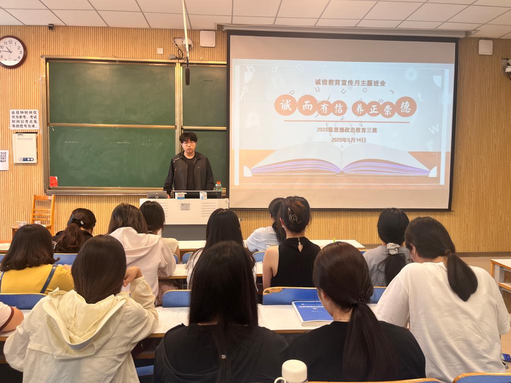 为践行社会主义核心价值观,弘扬诚信精神,5月14日上午,beat365在线唯一官网2023级思想政治教育三班在社科楼515召开“诚而有信,养正崇德”主题班会。beat3652023级思想政治教育三班全体同学共同参与本次班会,班会由团支书郝瀚主持。