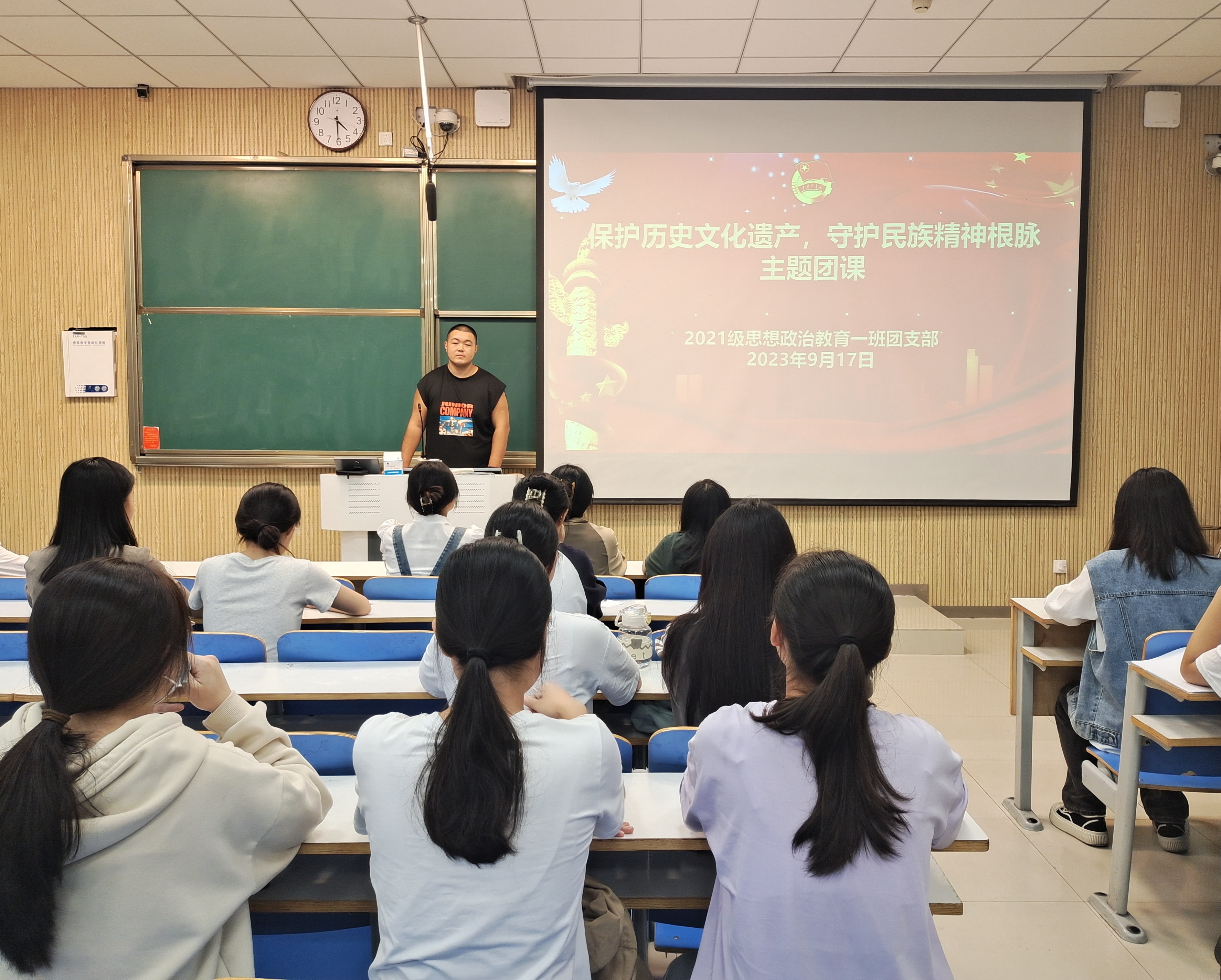 9月17日下午,beat365在线唯一官网2021级思想政治教育一班在社科楼515教室召开“保护历史文化遗产,守护民族精神根脉”主题团课。2021级思想政治教育一班全体团员共同参加本次团课。团课由团支书戴翰林主持。