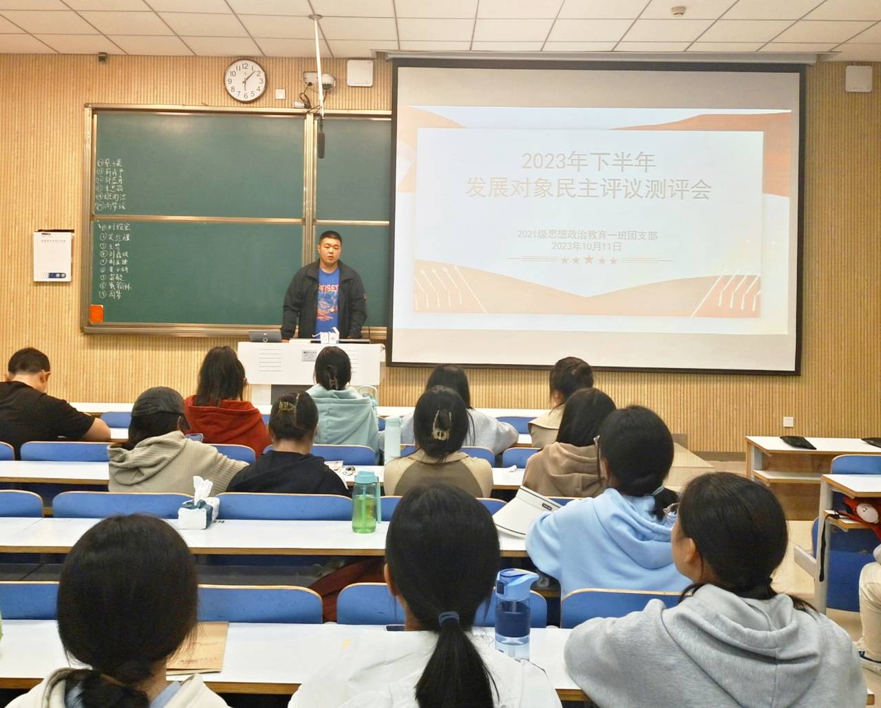 10月11日下午,beat365在线唯一官网2021级思想政治教育一班在社科楼515教室召开2023年下半年发展对象民主评议测评会。2021级思想政治教育一班全体团员共同参加本次会议。会议由团支书戴翰林主持。