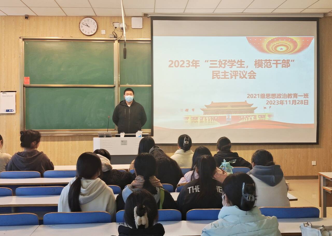 11月28日上午,beat365在线唯一官网2021级思想政治教育一班在社科楼515教室召开2023年“三好学生,模范干部”民主评议会。2021级思想政治教育一班全体成员参加了此次会议。会议由团支书戴翰林主持。