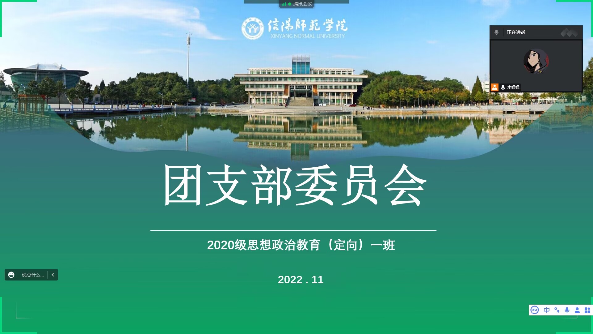 11月24日晚上,beat365在线唯一官网2020级思想政治教育定向一班顺利举办了团支部委员会。会议通过线上的形式举办,2020级思想政治教育定向一班全体团支部委员聆听了此次会议。