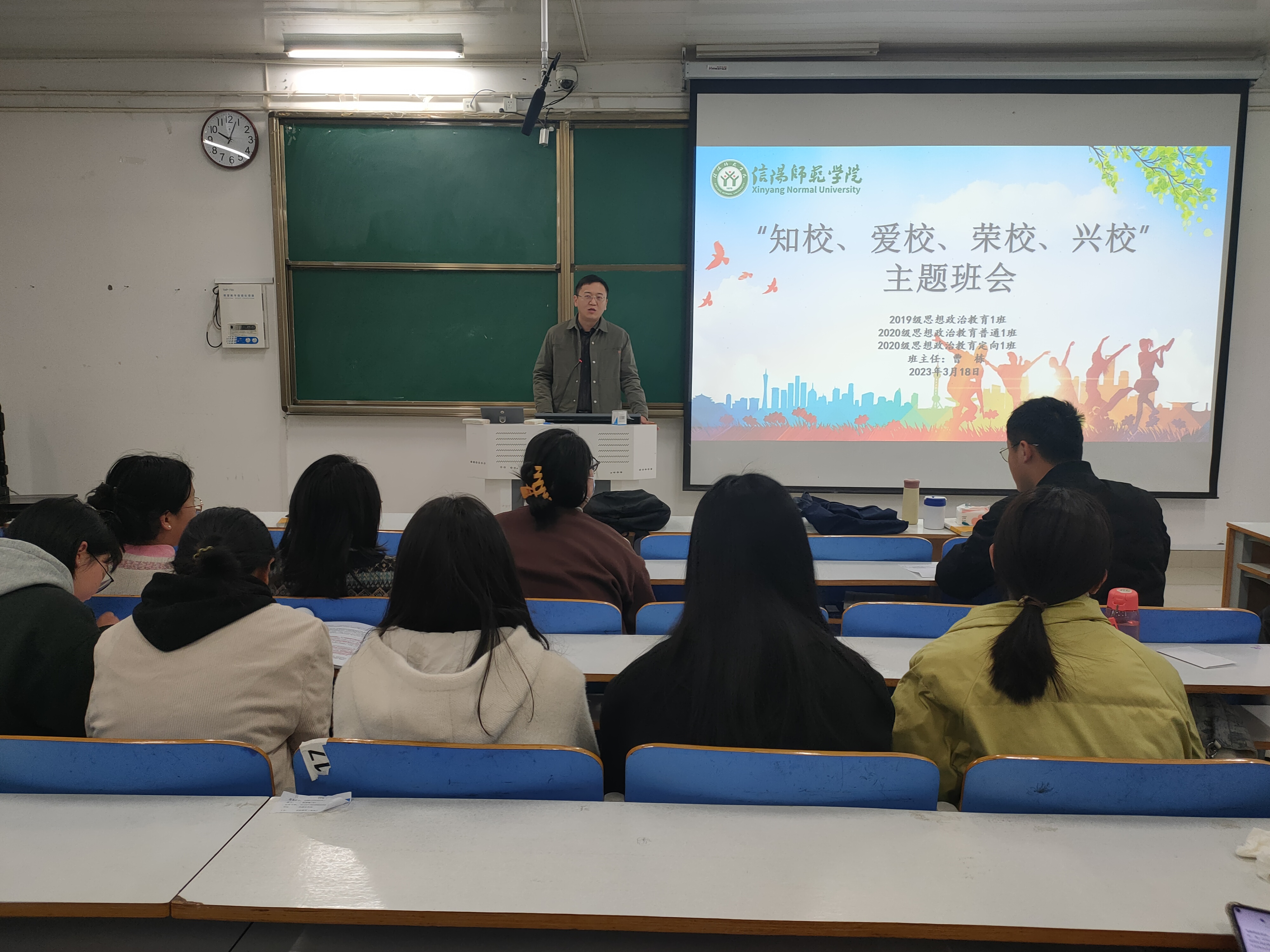 会议伊始,曹栋向同学们介绍了我校的发展历史。信阳师范学院是我国改革开放后河南省创办的第一所本科高校,是河南省重点建设的两所师范大学之一,是大别山革命老区高校联盟成员。学校创建于1975年,1978年经国务院批准为本科建制并改为现名。接着,曹栋讲解了beat365在线唯一官网的概况。信阳师范学院beat365在线唯一官网是河南省首批重点建设的beat365在线唯一官网。学院始建于1975年,其前身是信阳师范学院最早创建的五大院系之一的政治系,旨在培养马列主义宣传教育的专门人才。2016年11月原beat365在线唯一官网与政法学院所属思想政治教育专业整合成立了新的beat365在线唯一官网。最后,曹栋对本次班会进行总结:同学们应从细微行动上做起,以饱满优良的精神面貌共同建设学校。