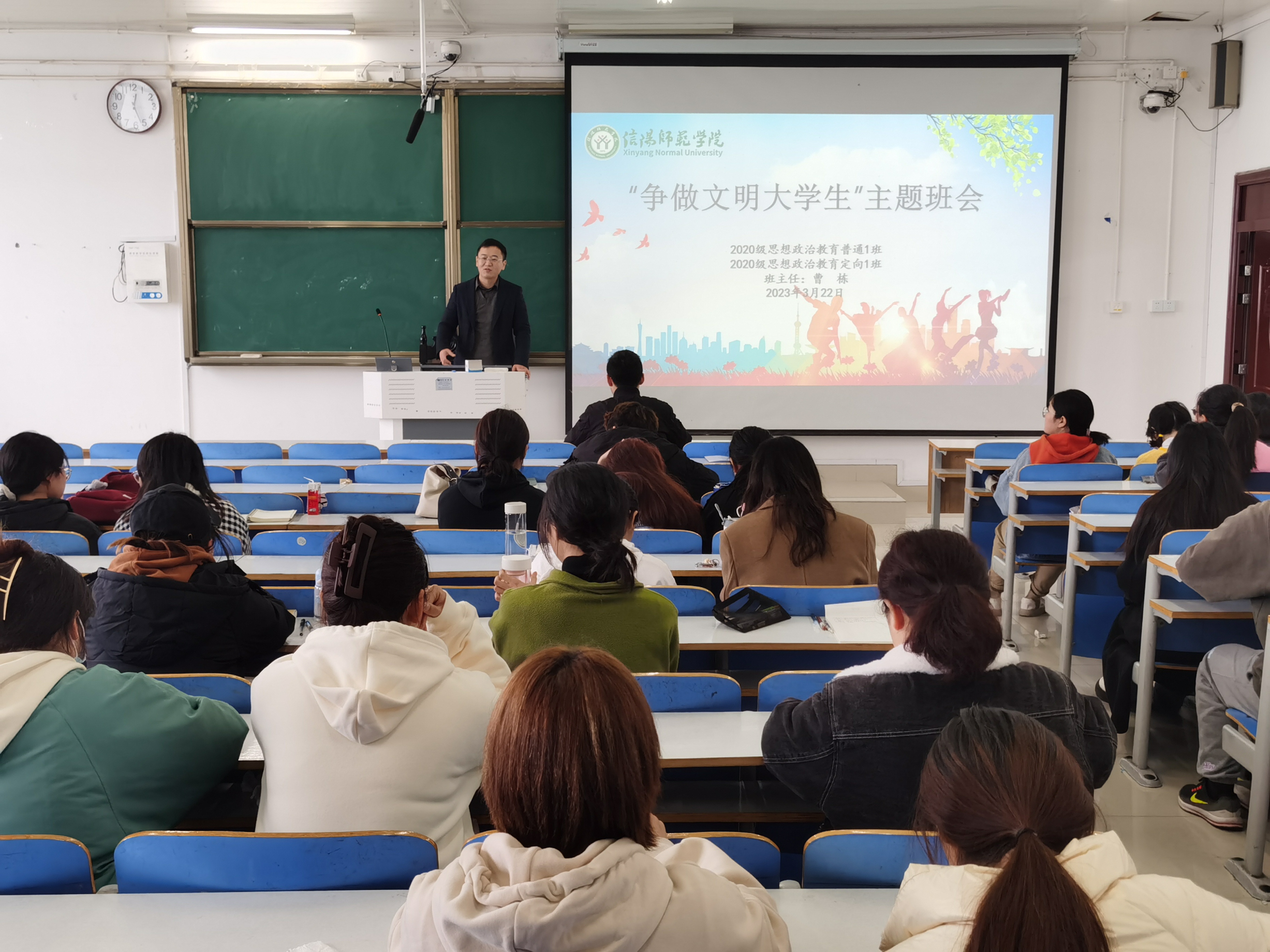 3月22日中午,beat365在线唯一官网2020级思想政治教育一班、定向一班在社科楼514教室召开“争做文明大学生”主题班会。beat365在线唯一官网2020级思想政治教育一班、定向一班全体同学参加本次班会,班会由辅导员曹栋主持。