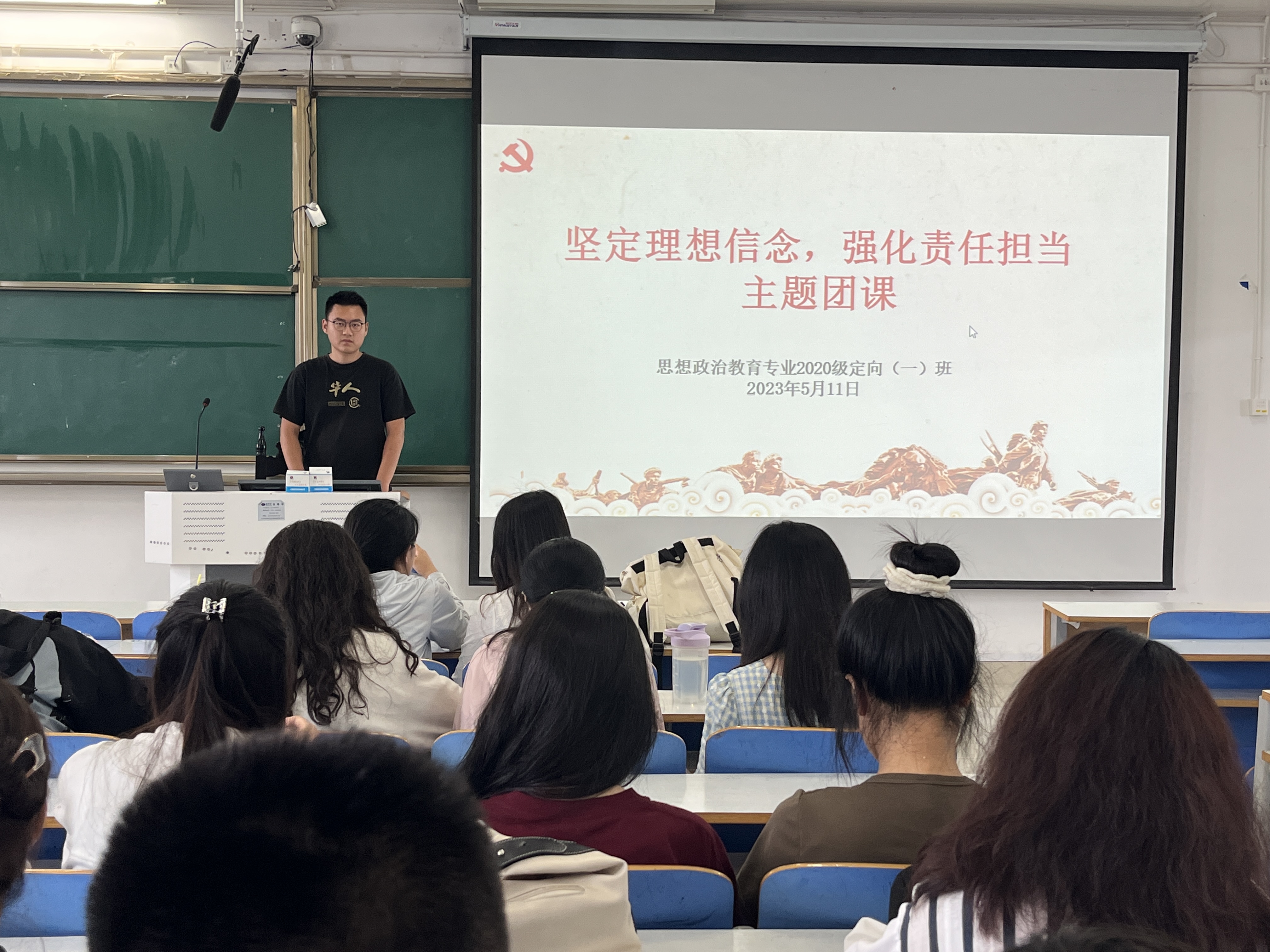 5月11日下午,beat365在线唯一官网2020级思想政治教育定向一班在社科楼514教室顺利举行了坚定理想信念,强化责任担当主题班会。此次班会由团支书朱紫峰主持。