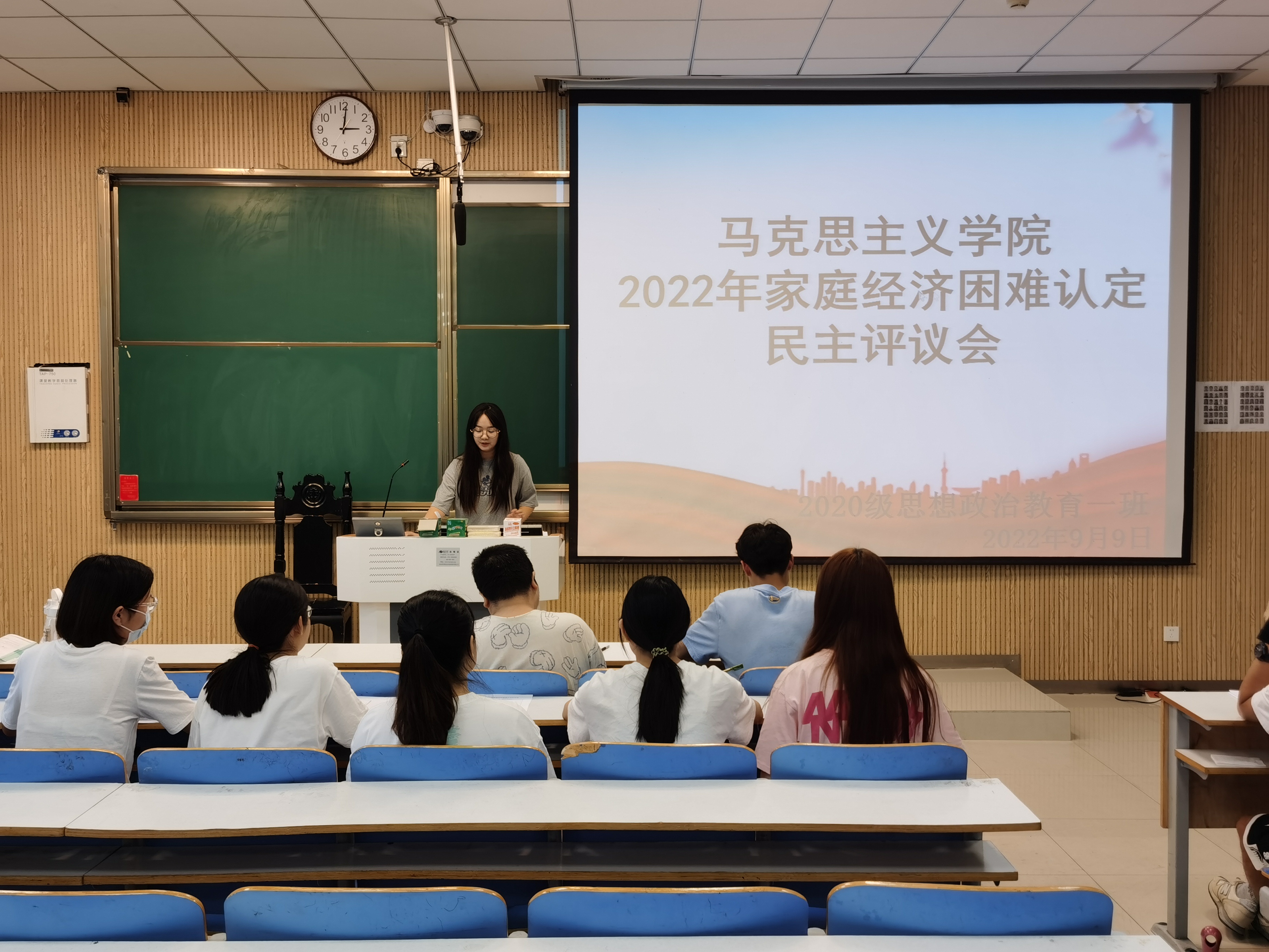 为做好家庭经济困难学生的认定工作,9月9日下午,beat365在线唯一官网2020级思想政治教育一班在社科楼515教室召开2022年班级贫困认定民主评议会。评议小组成员、申请人及监督人参与了本次会议。会议由团支书卢茜雨主持。