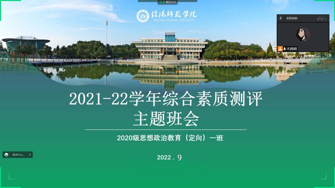 9月28日,beat365在线唯一官网2020级思想政治教育定向一班采用腾讯会议的形式顺利举办学年综合素质测评班会。定向一班全体学生参与了此次班会。