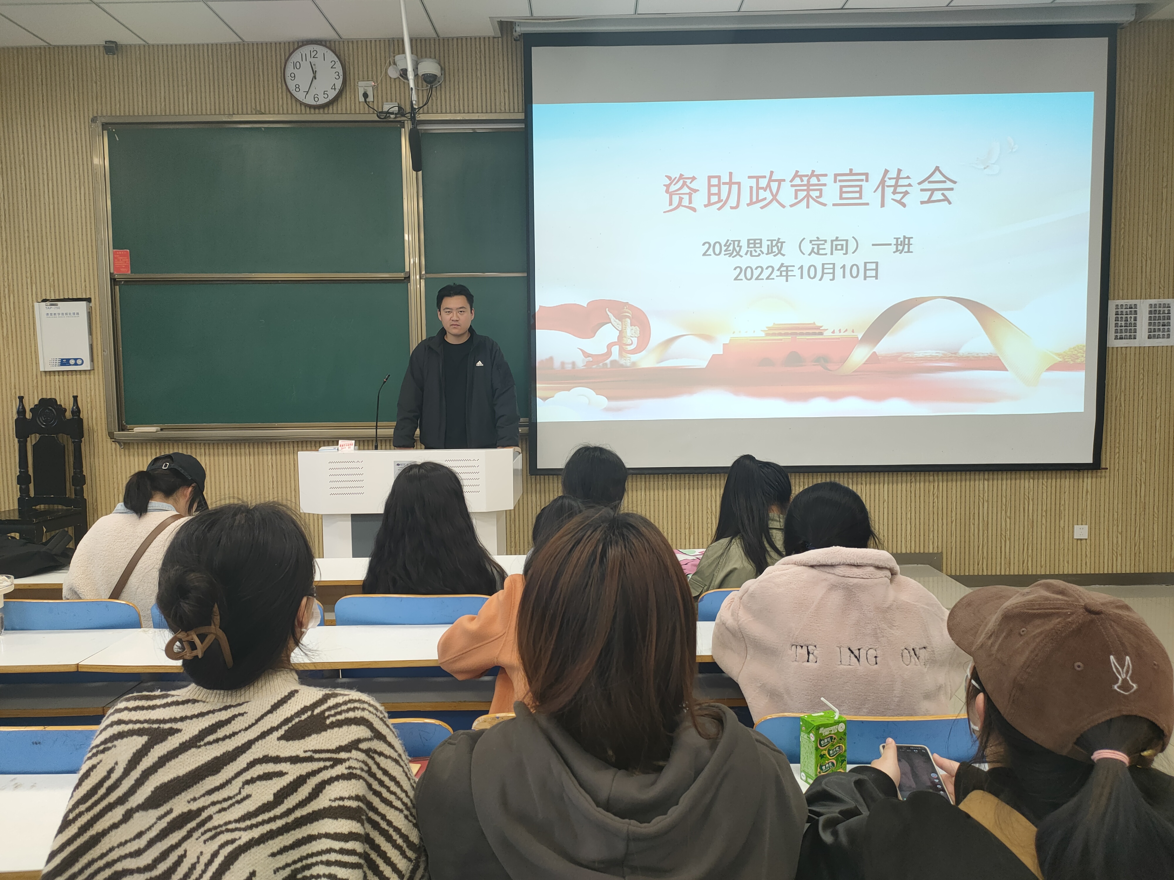 10月10日上午,beat365在线唯一官网2020级思想政治教育定向一班在社科楼515教室顺利举办国家资助政策宣传会。定向一班全体学生聆听了此次会议。