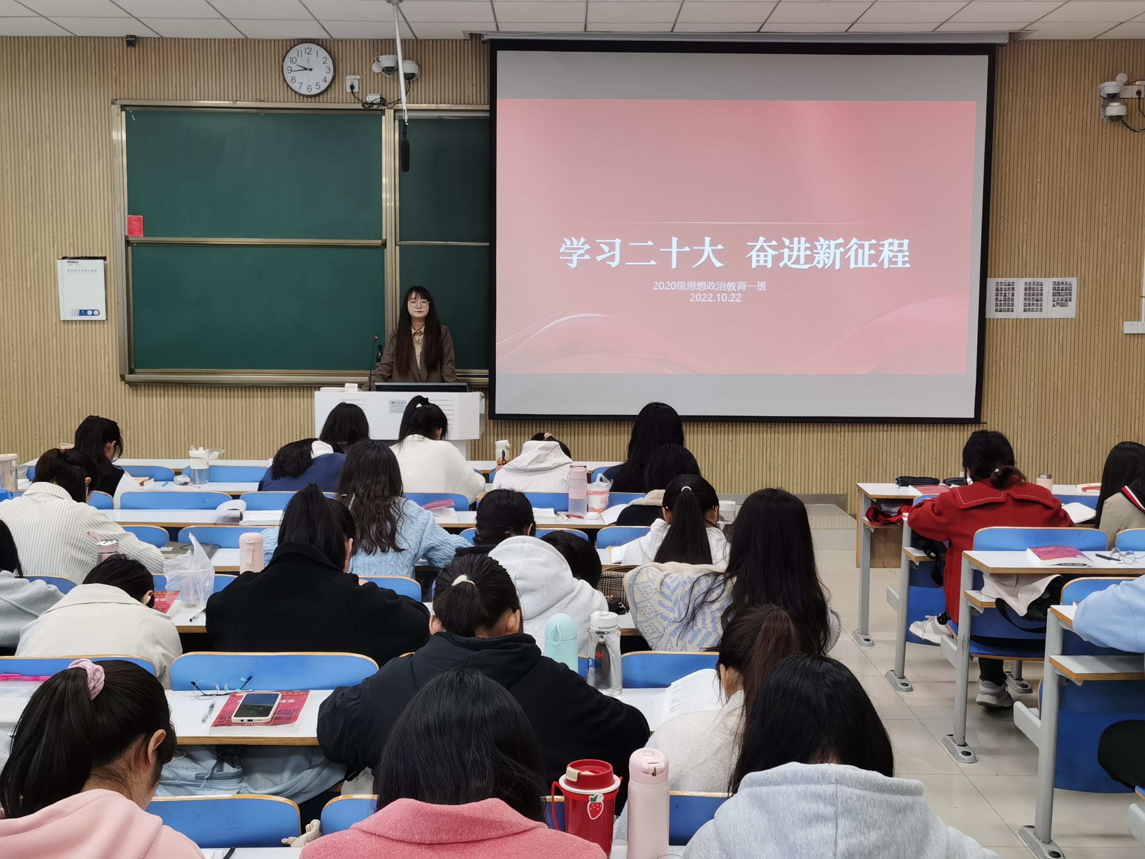 10月22日上午,beat365在线唯一官网2020级思想政治教育一班团支部在社科楼515教室开展“学习二十大,奋进新征程”主题团课。2020级思想政治教育一班团支部全体团员参加此次团课,团课由团支部书记卢茜雨主持。