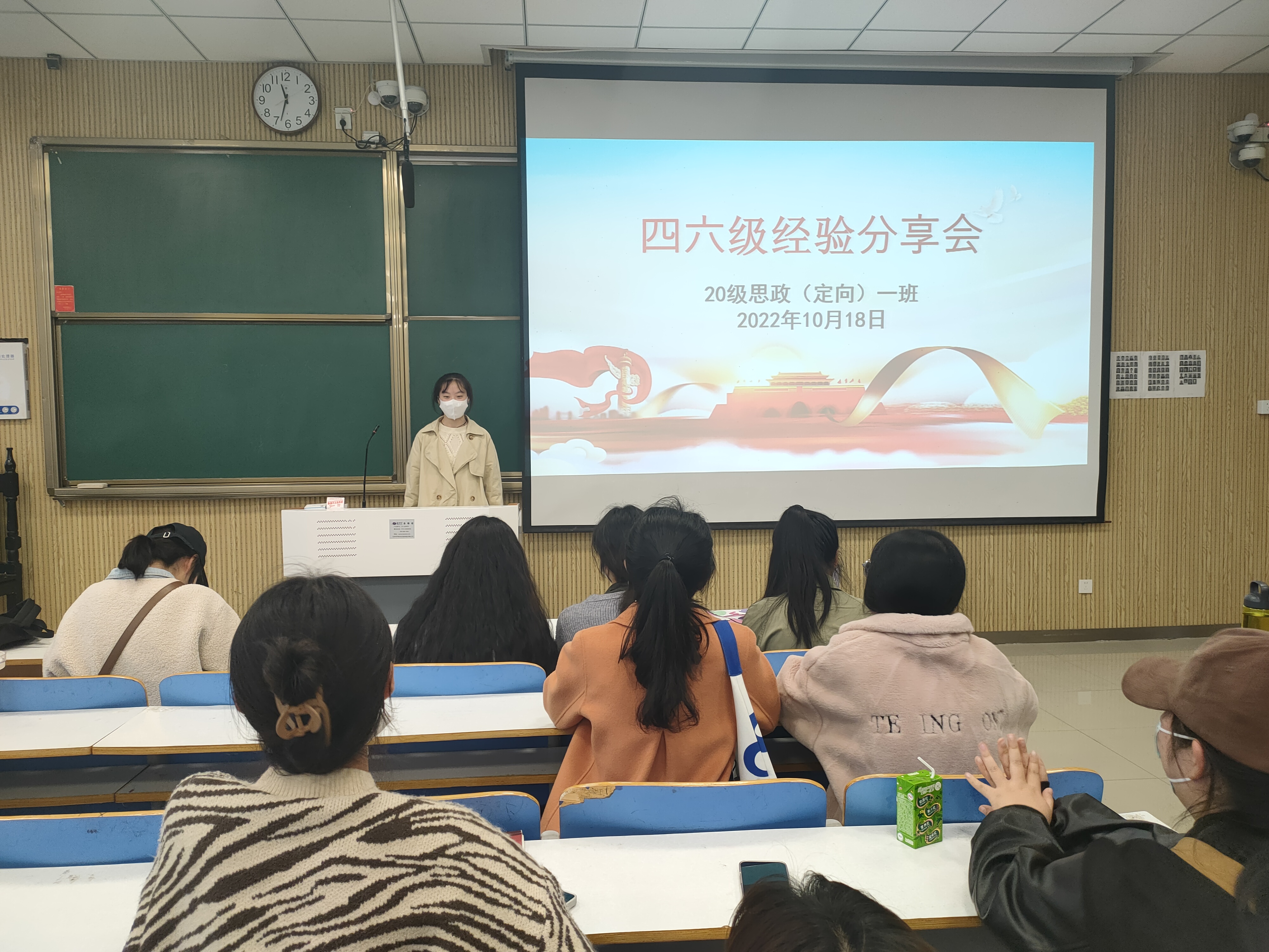10月28日上午,beat365在线唯一官网2020级思想政治教育定向一班在社科楼515召开大学生四、六级考试经验分享会。定向一班全体同学聆听了此次分享会。
