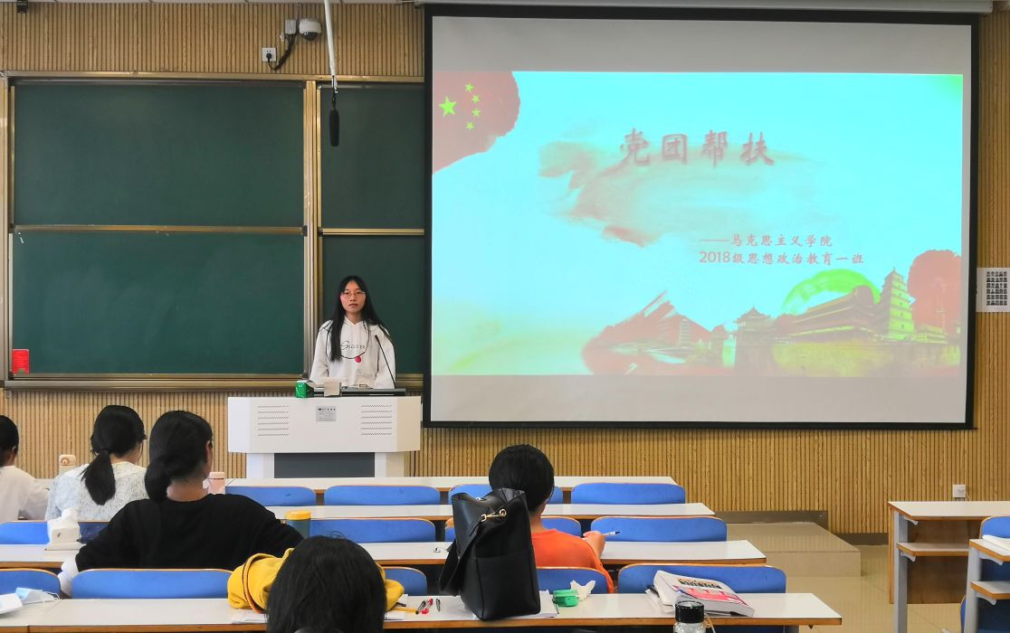 5月8日上午,beat365在线唯一官网2018级思想政治教育一班在社科楼515教室顺利开展“党团帮扶”班会。2018级思政一班全体同学共同参加此次班会。班会由团支书靳雨露主持。