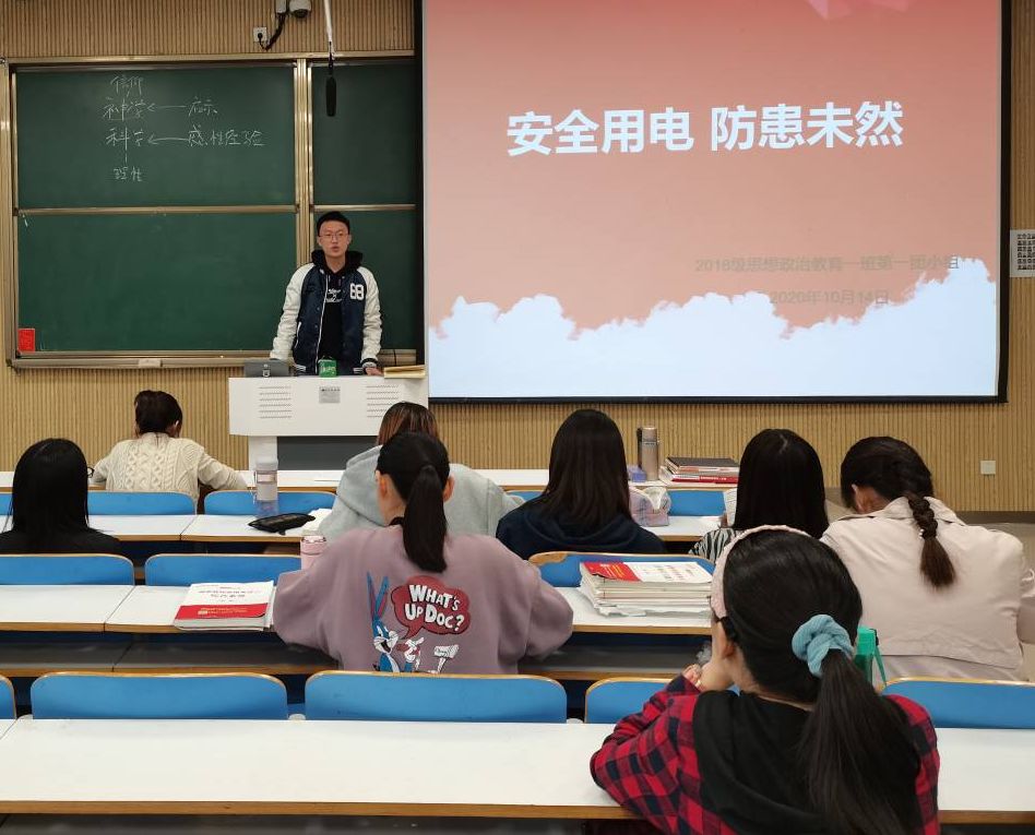 10月14号上午,beat365在线唯一官网2018级思想政治教育一班第一团小组在社科楼515教室顺利开展“安全用电,防患未然”主题团会。第一团小组全体成员共同参加此次团会。此次团会由组长牛笑怡主持。