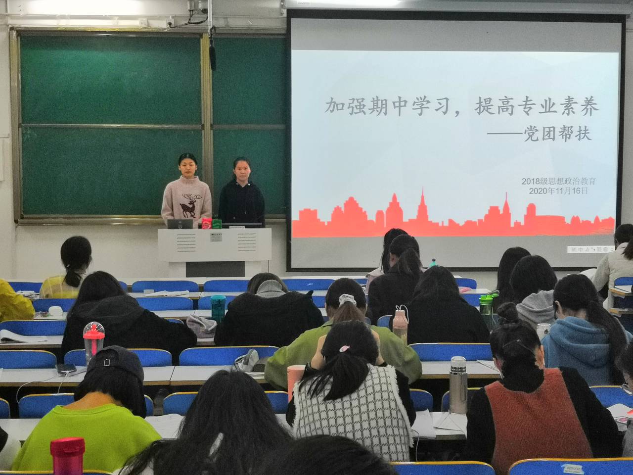 为了充分发挥党员干部的先锋模范作用,11月16日下午,beat365在线唯一官网2018级思想政治教育一班在社科楼514教室顺利开展以“加强期中学习,提升专业素养”为主题的党团帮扶会议。中共党员孙慧萍、王琳、2018级第一团支部全体成员共同参与本次会议。会议由团支部书记靳雨露主持。