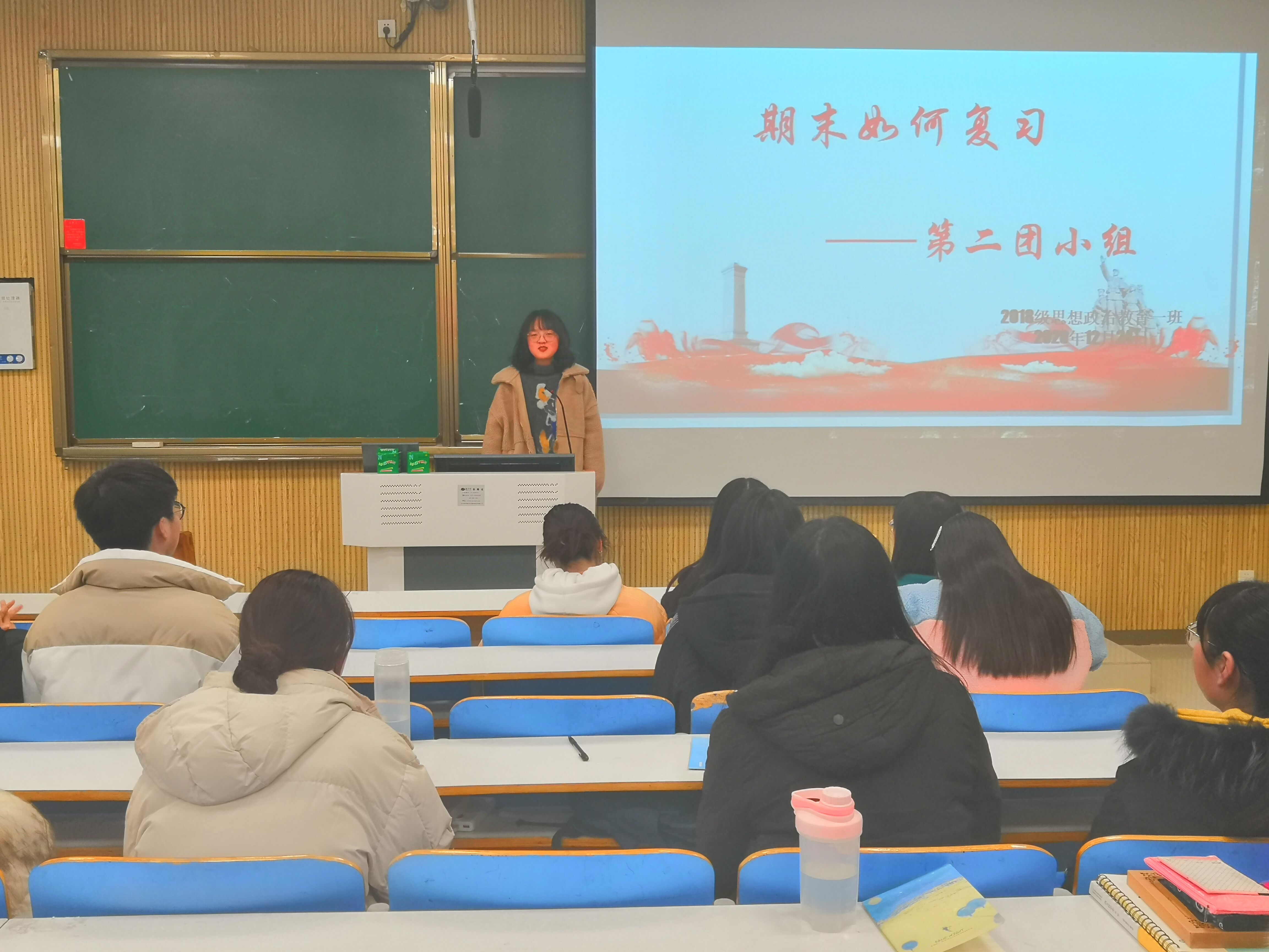 12月24日下午,beat365在线唯一官网2018级思想政治教育一班第二团小组在社科楼515教室顺利开展“期末如何复习”主题团会。第二团小组全体成员共同参加此次团会。此次会议由小组成员李祎主持。