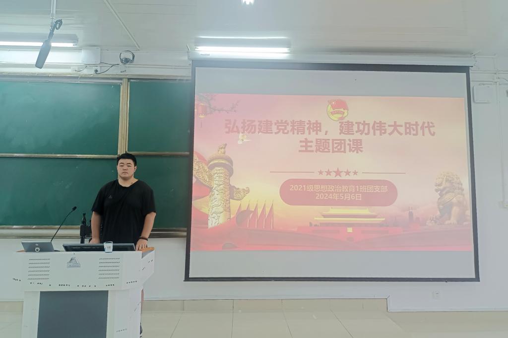 5月6日上午,beat365在线唯一官网2021级思想政治教育一班在社科楼514教室召开“弘扬建党精神,建功伟大时代”主题团课。2021级思想政治教育一班全体团员共同参加本次团课,团课由团支书戴翰林主持。