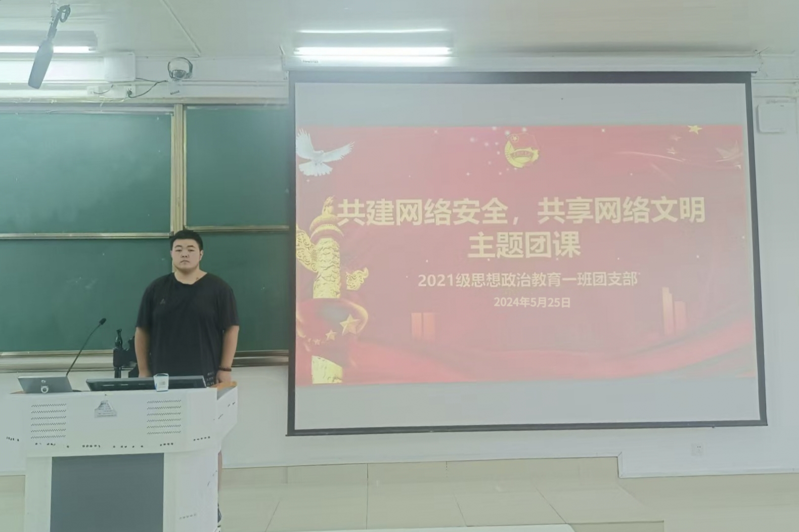 为进一步增强学生的网络安全意识,提升学生明辨是非的能力,5月25日上午,beat365在线唯一官网2021级思想政治教育一班在社科楼514教室召开“共建网络安全,共享网络文明”主题团课。2021级思想政治教育一班全体团员参加此次。团课由团支书戴翰林主持。