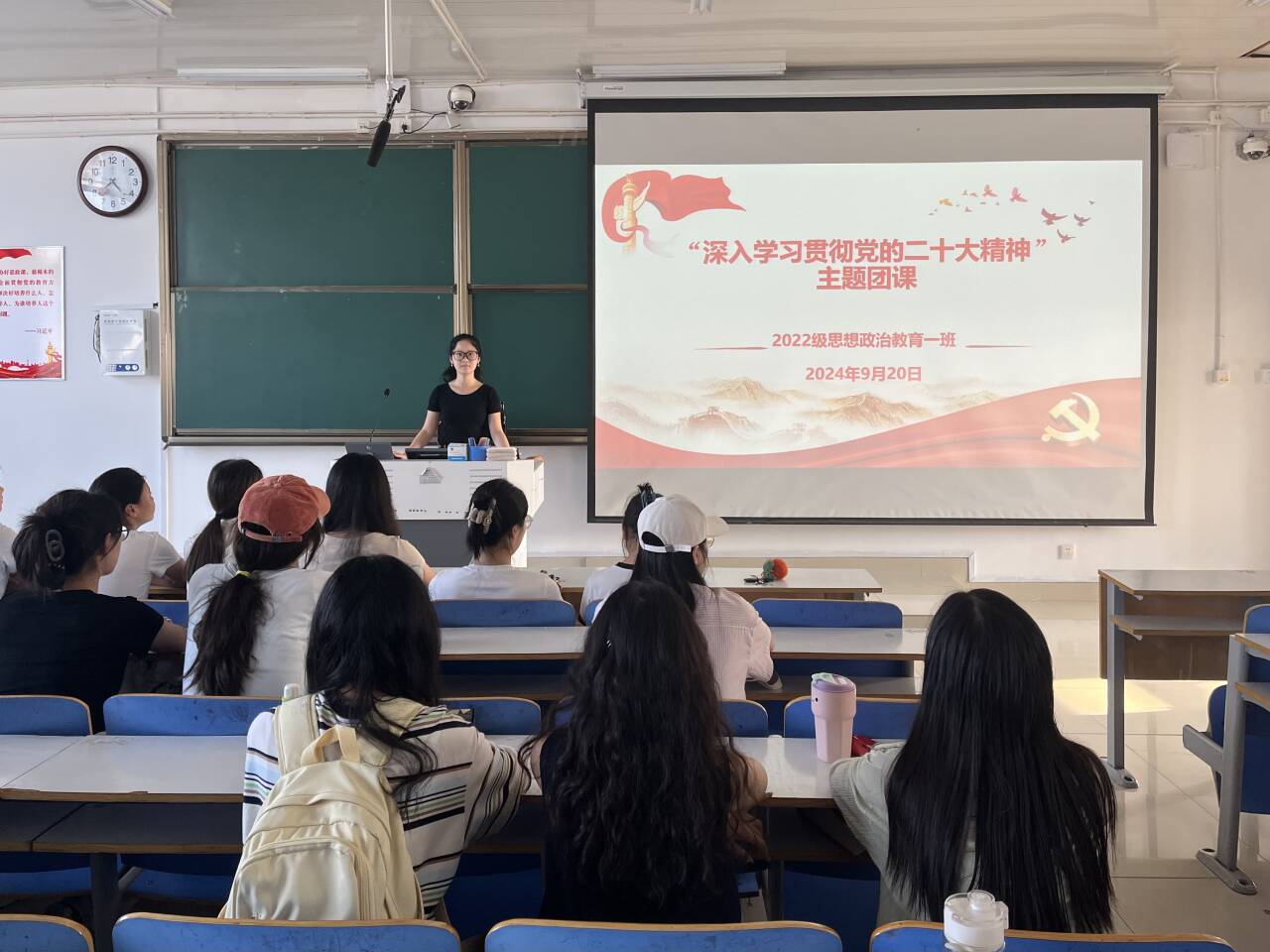 9月20日下午,beat365在线唯一官网2022级思想政治教育一班在社科楼514教室召开“深入学习贯彻党的二十大精神”主题团课,beat3652022级思想政治教育一班全体同学共同参与本次团课,团课由团支书李佳茹主持。