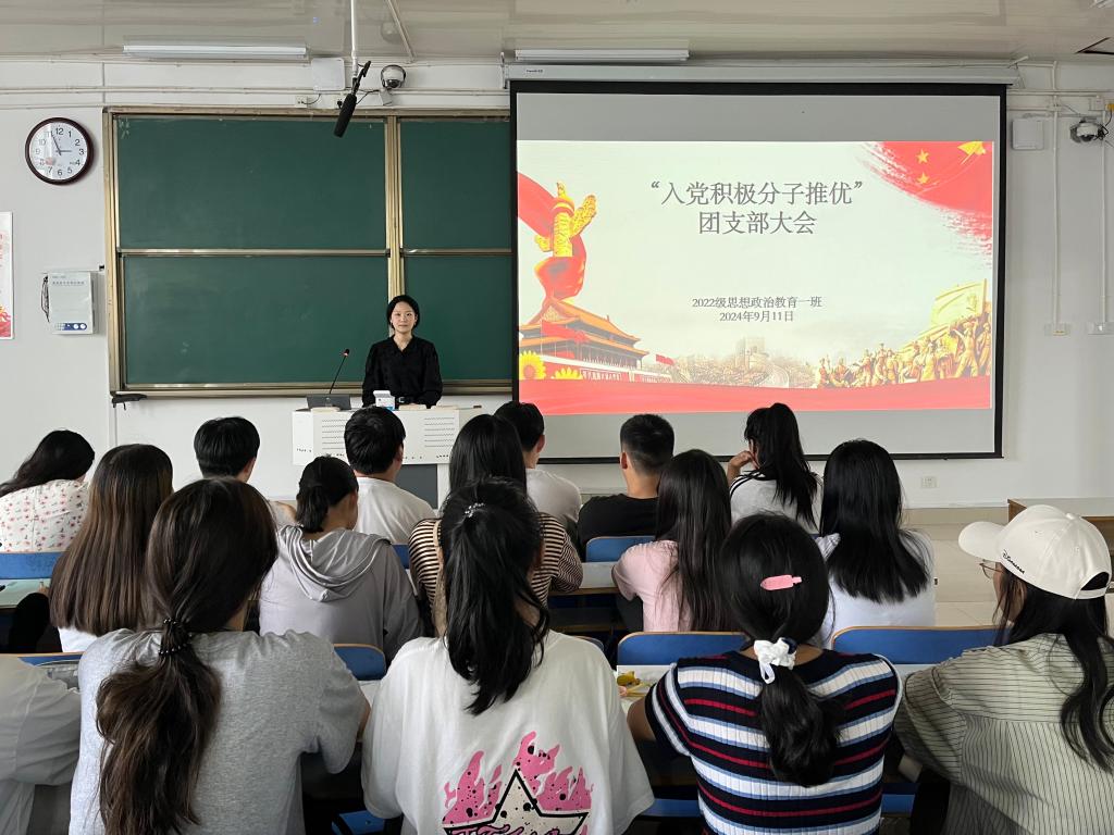为进一步加强党组织建设,充实党的新生力量,9月11日下午,beat365在线唯一官网2022级思想政治教育一班在社科楼514教室召开“入党积极分子推优”团支部大会,beat3652022级思想政治教育一班全体同学共同参与本次会议,会议由团支书李佳茹主持。