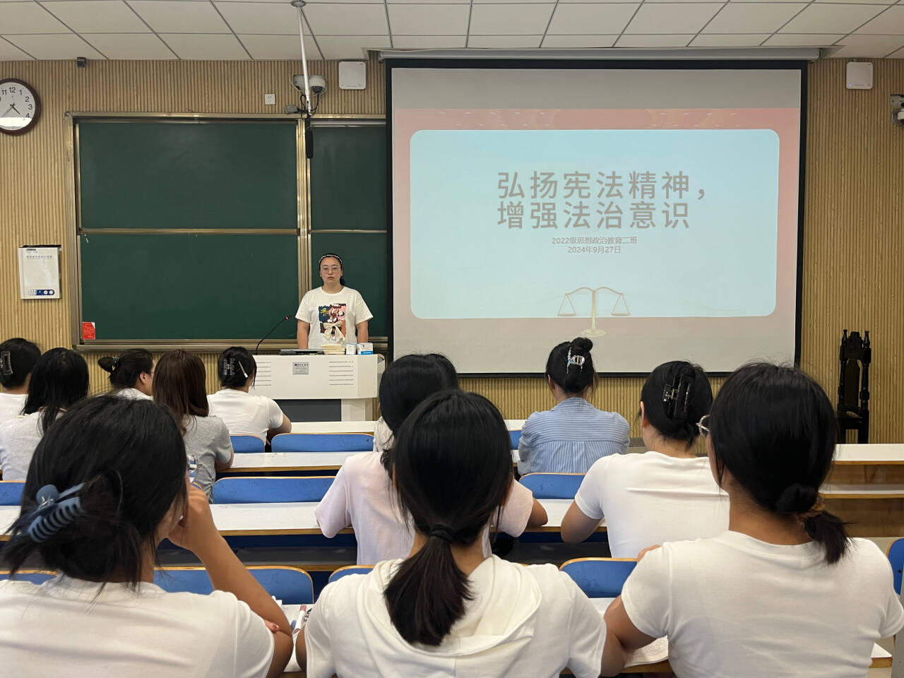 9月27日下午,beat365在线唯一官网2022级思想政治教育二班在社科楼515教室召开“弘扬宪法精神,增强法治意识”主题班会。beat3652022级思想政治教育二班全体成员共同参与此次班会。会议由班长李佳音主持。