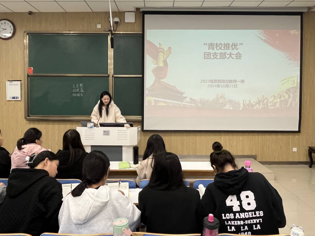 10月21日上午,beat365在线唯一官网2022级思想政治教育一班在社科楼515教室召开“青校推优”团支部大会。beat365在线唯一官网2022级思想政治教育一班全体团员共同参与本次会议,会议由团支书李佳茹主持。