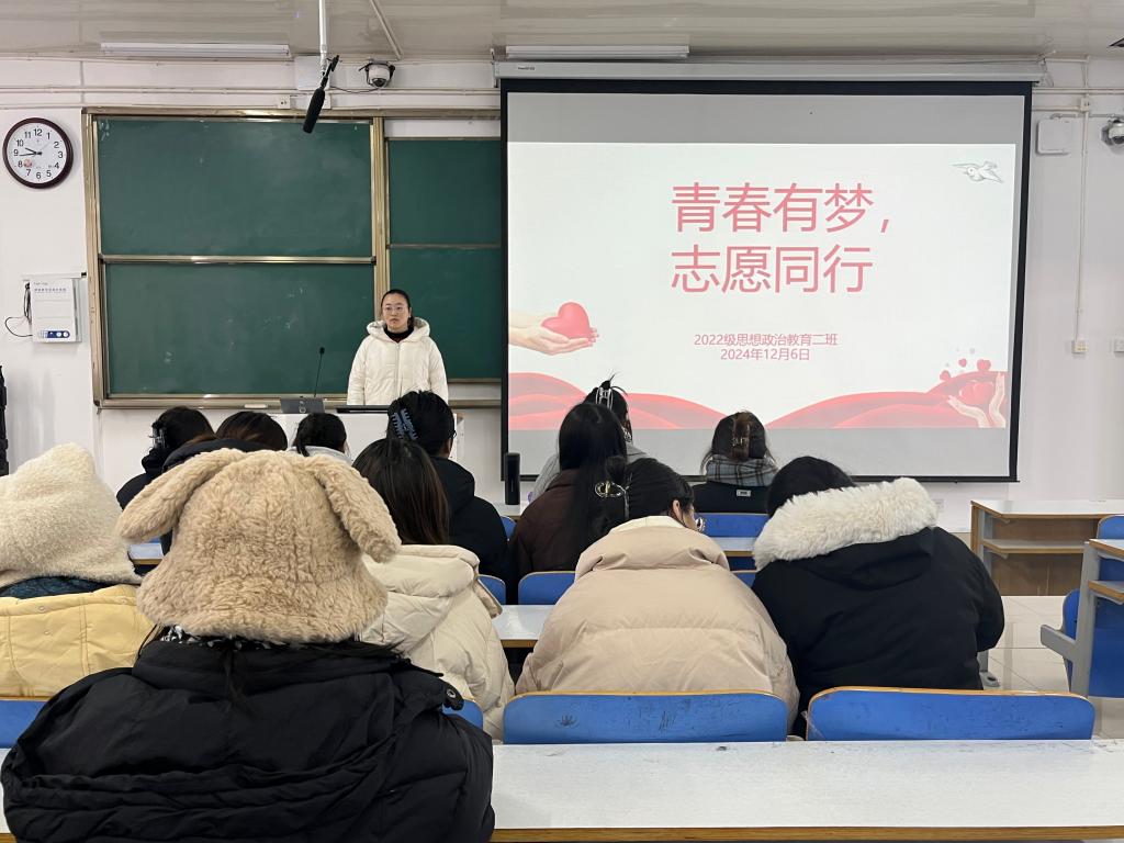12月6日上午,beat365在线唯一官网2022级思想政治教育二班在社科楼514教室召开“青春有梦,志愿同行”主题团课。beat3652022级思想政治教育二班全体成员共同参与此次团课。团课由团支书李佳音主持。