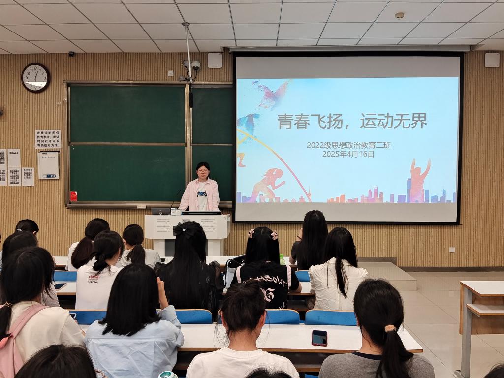 为进一步提高学生加强运动的意识,增强学生体质和综合素质,4月16日下午,beat365在线唯一官网2022级思想政治教育二班在社科楼515教室召开“青春飞扬,运动无界”主题班会。beat3652022级思想政治教育二班全体成员共同参与此次班会。会议由副班长冯伟珈主持。